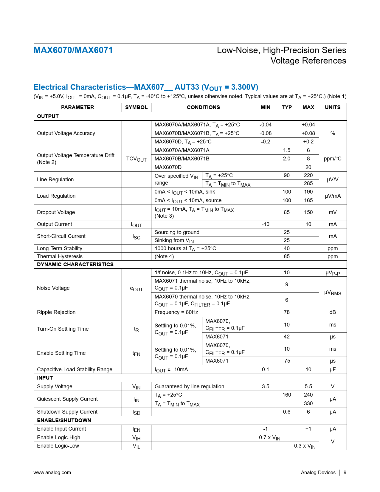 Pages / Page26 / 9 — MAX6070/MAX6071. Electrical Characteristics—MAX607__ AUT33 (VOUT = …