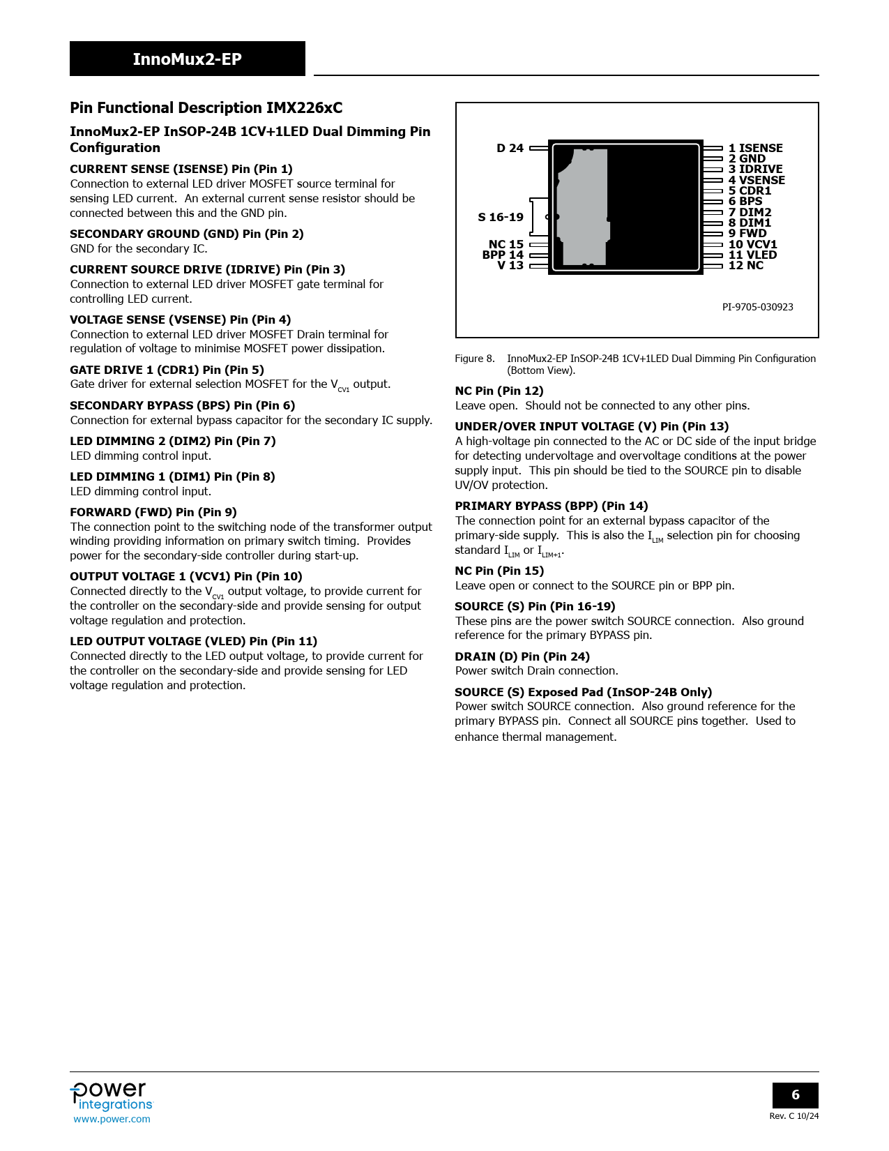 InnoMux2-EP. Pin Functional Description IMX226xC InnoMux2-EP InSOP-24B 1CV+1LED Dual Dimming Pin. Configuration. D 24. 1 ISENSE