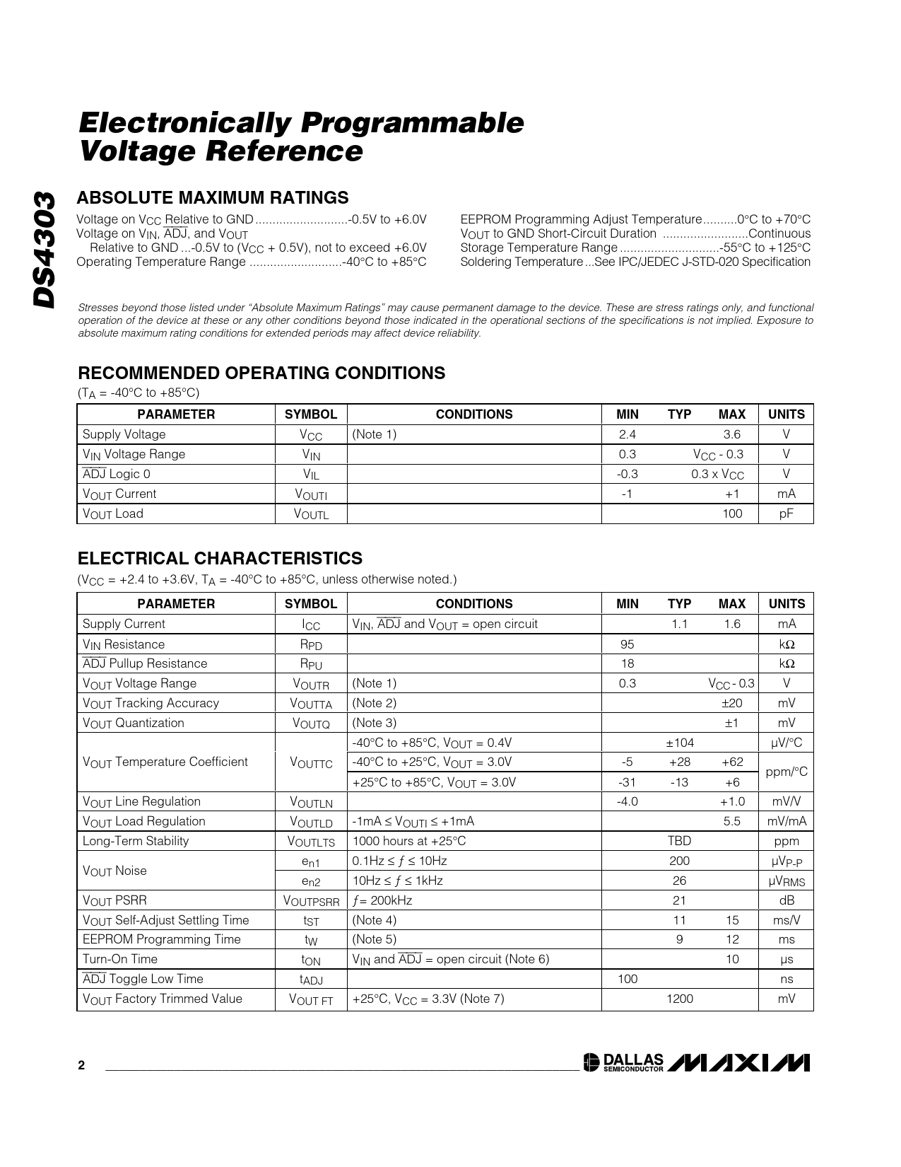 Electronically Programmable Voltage Reference. ABSOLUTE MAXIMUM RATINGS. DS4303. RECOMMENDED OPERATING CONDITIONS. PARAMETER