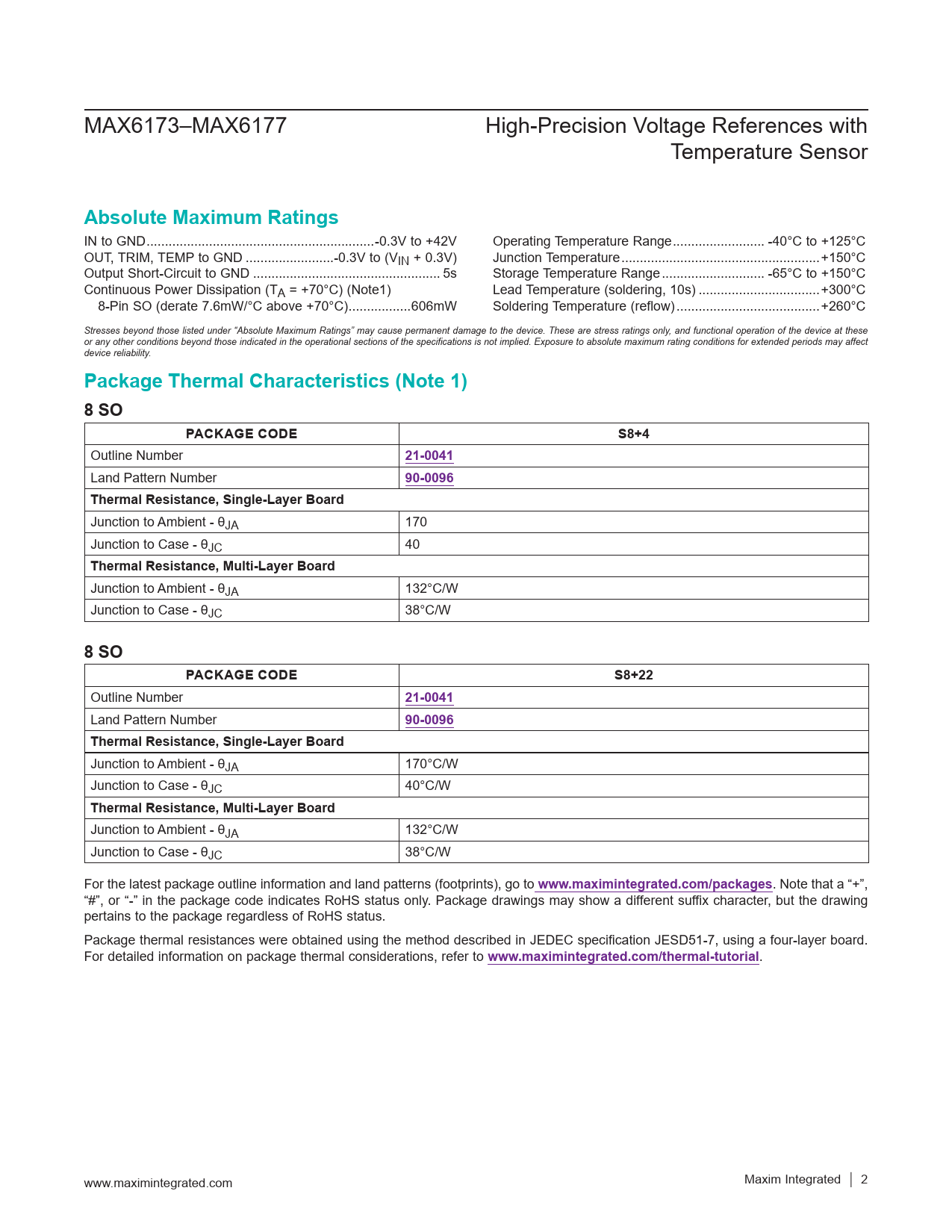 Absolute Maximum Ratings. Package Thermal Characteristics (Note 1) 8 SO. PACKAGE CODE. S8+4. 21-0041. 90-0096