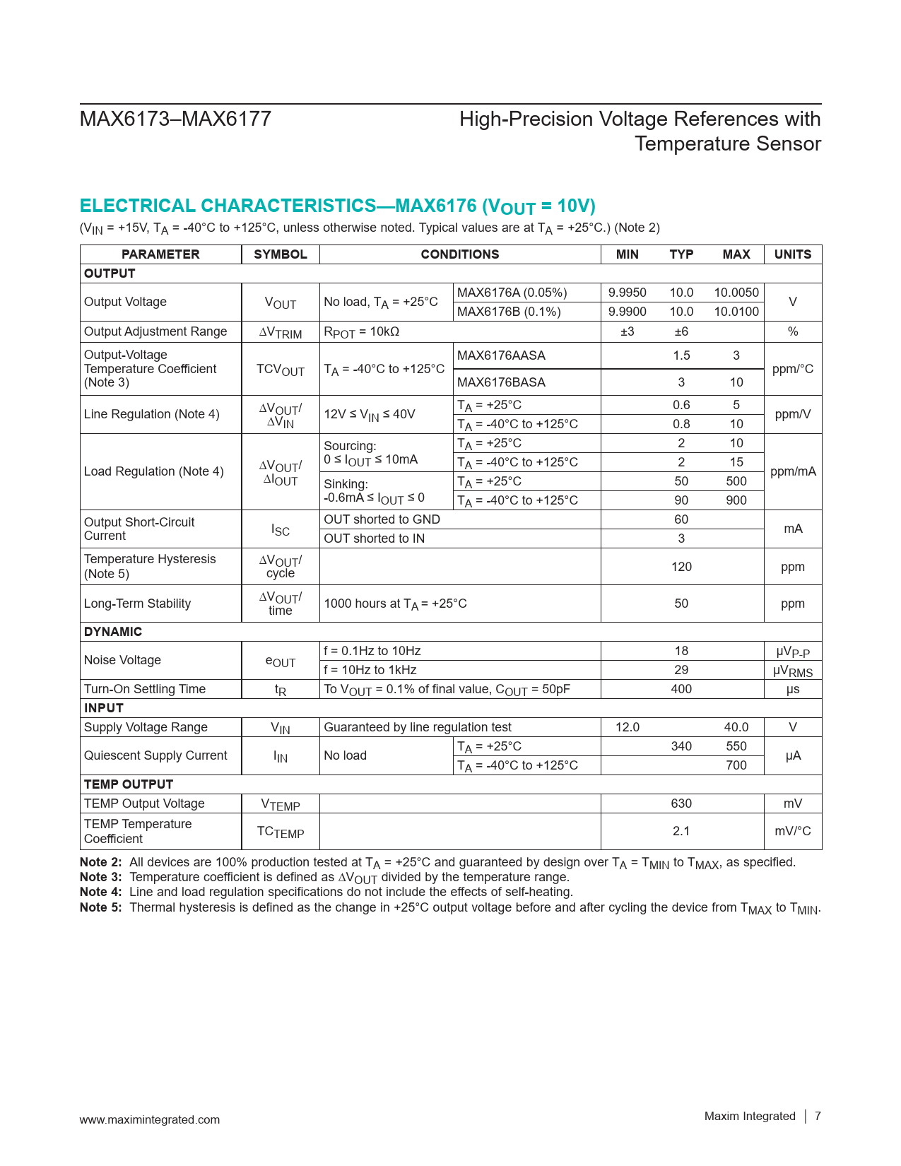 ELECTRICAL CHARACTERISTICS—MAX6176 (VOUT = 10V) PARAMETER SYMBOL CONDITIONS MIN TYP MAX UNITS OUTPUT DYNAMIC INPUT TEMP OUTPUT