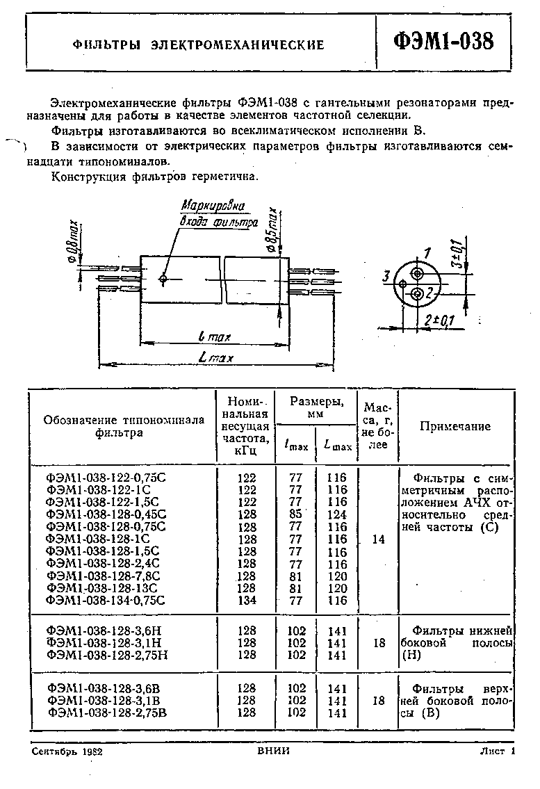 Datasheet ФЭМ1-038