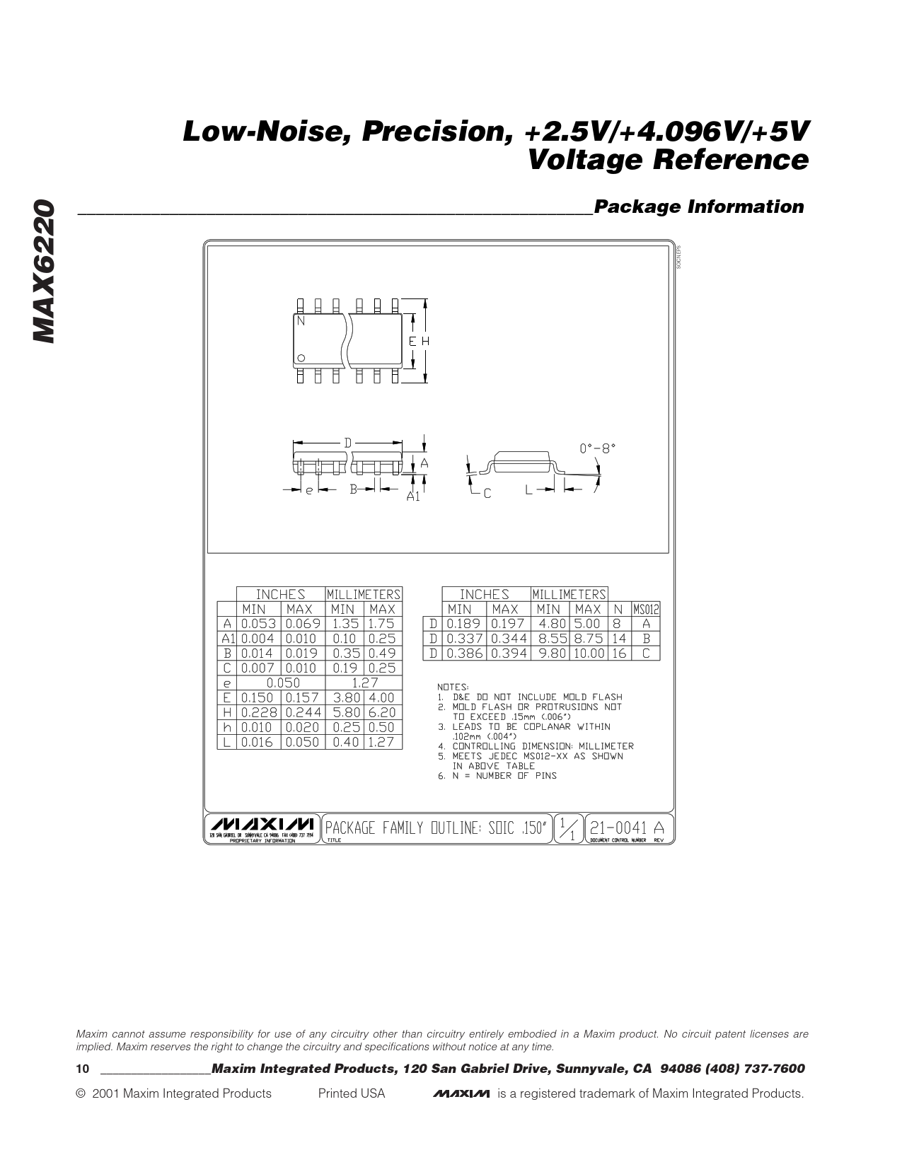 Low-Noise, Precision, +2.5V/+4.096V/+5V Voltage Reference ________________________________________________________Package Information