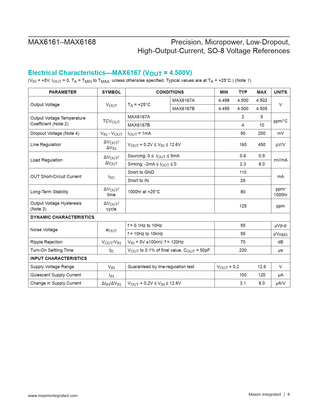 | Pages / Page | 17 / 8 — Electrical Characteristics—MAX6167 (VOUT = 4.500V). PARAMETER. SYMBOL. … |