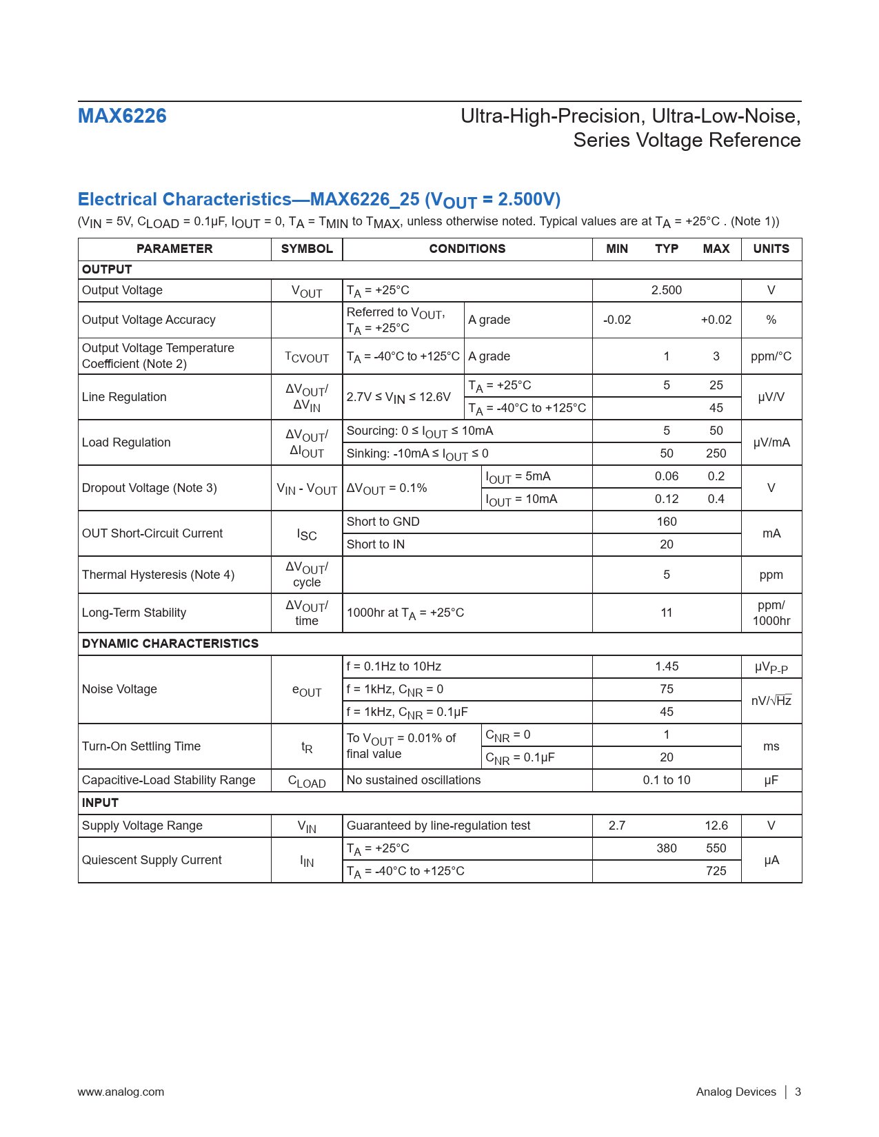 Pages / Page16 / 3 — MAX6226. Electrical Characteristics—MAX6226_25 (VOUT = 2.500V). …