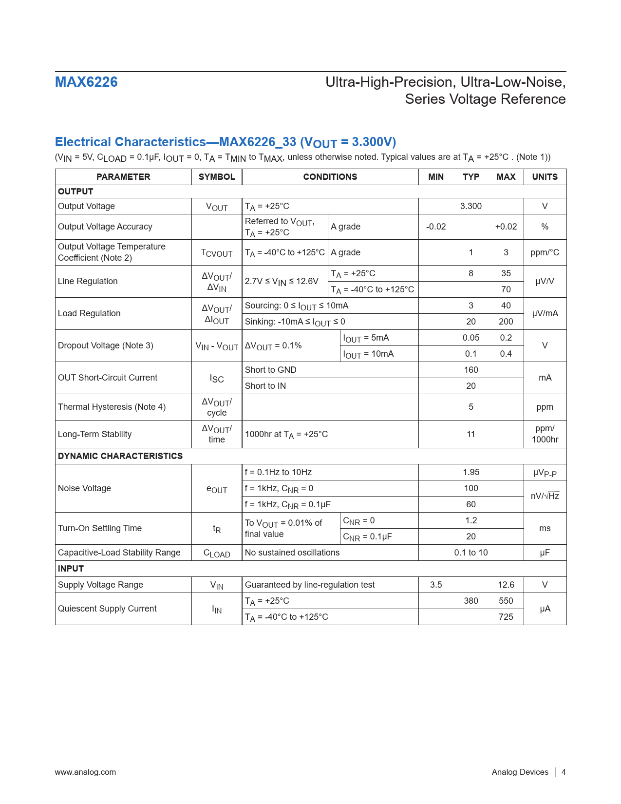Pages / Page16 / 4 — MAX6226. Electrical Characteristics—MAX6226_33 (VOUT = 3.300V). …