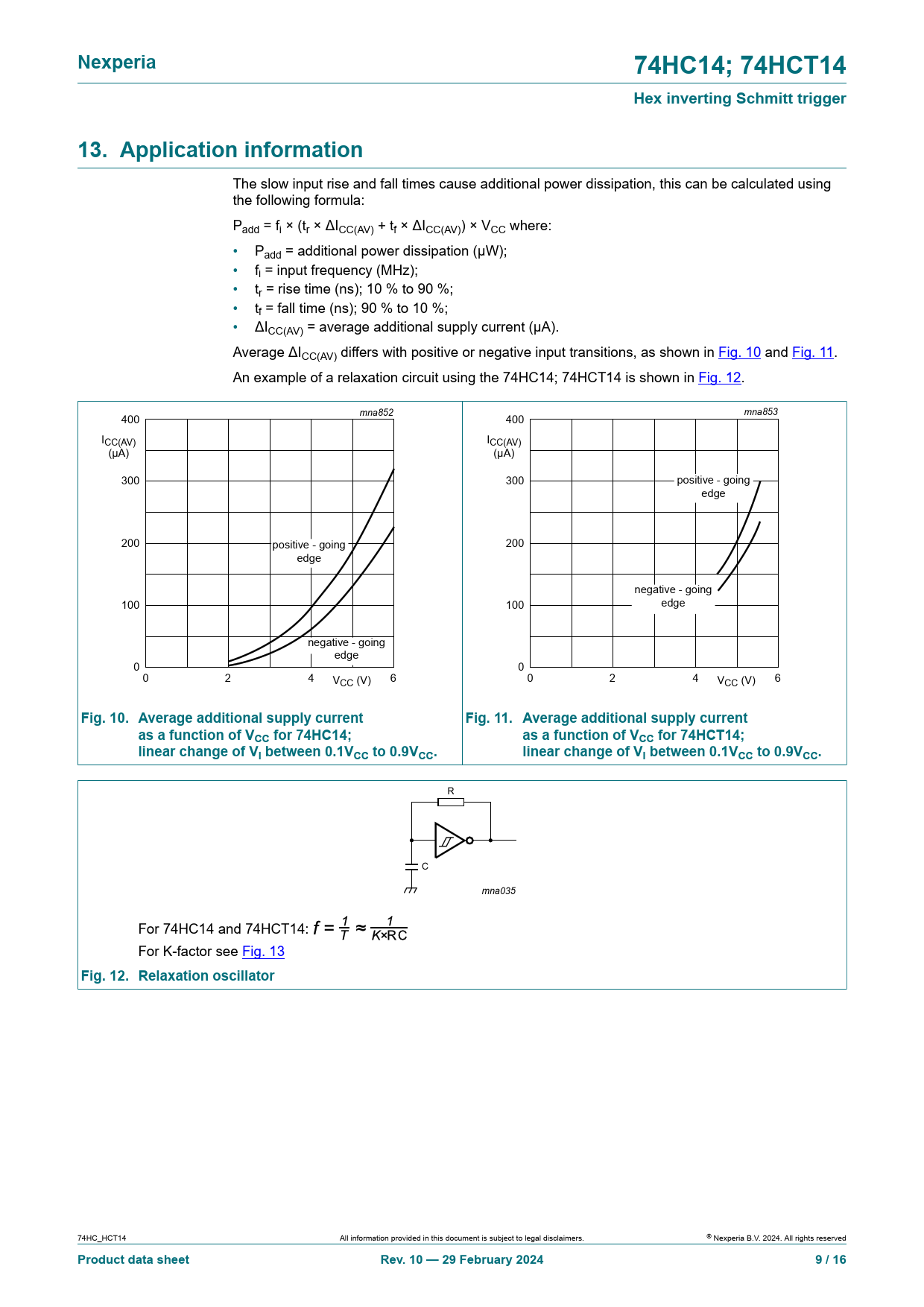 | Pages / Page | 16 / 9 — Nexperia. 74HC14; 74HCT14 Hex inverting Schmitt trigger. 13. Application … |