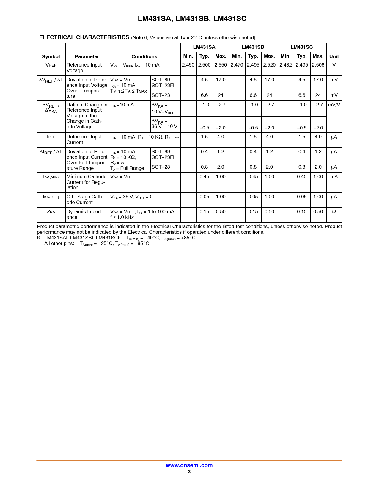 Datasheet LM431SA, LM431SB, LM431SC (ON Semiconductor) - 3