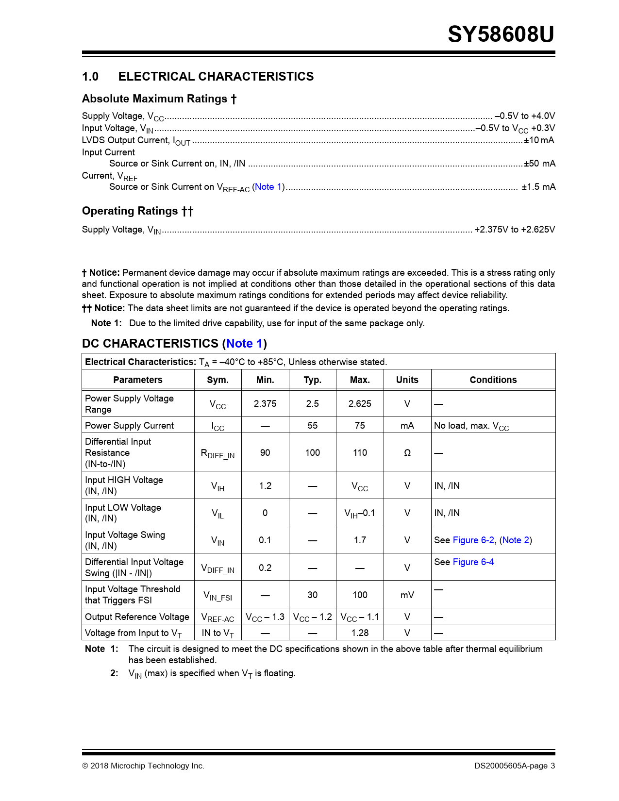 SY58608U. 1.0. ELECTRICAL CHARACTERISTICS. Absolute Maximum Ratings †. Operating Ratings ††. Notice:. Note 1: