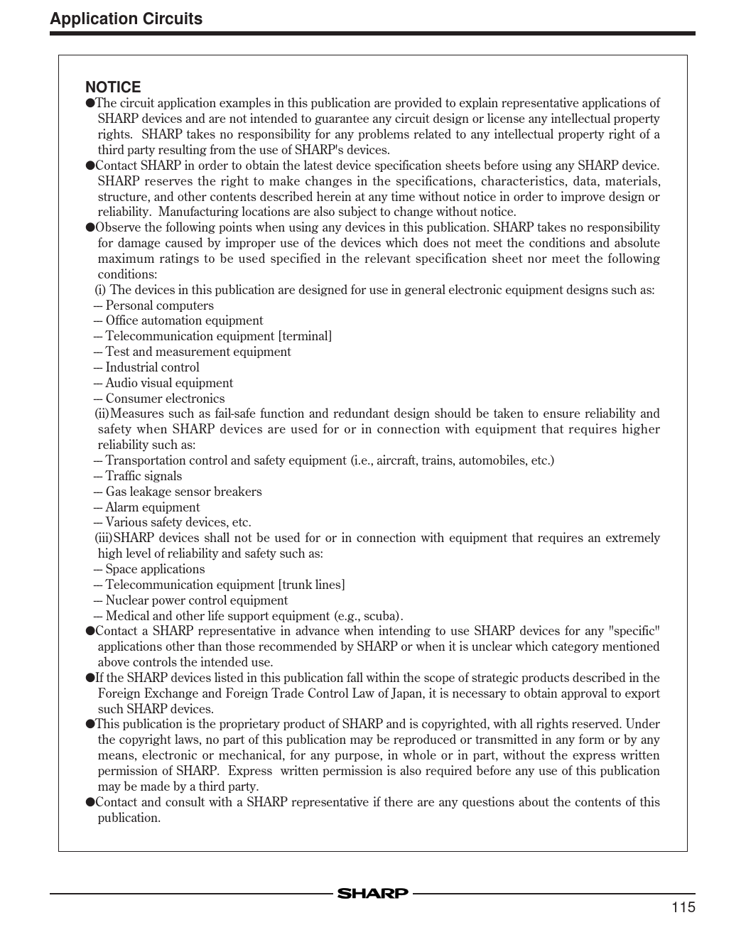 SHARP devices and are not intended to guarantee any circuit design or license any intellectual property