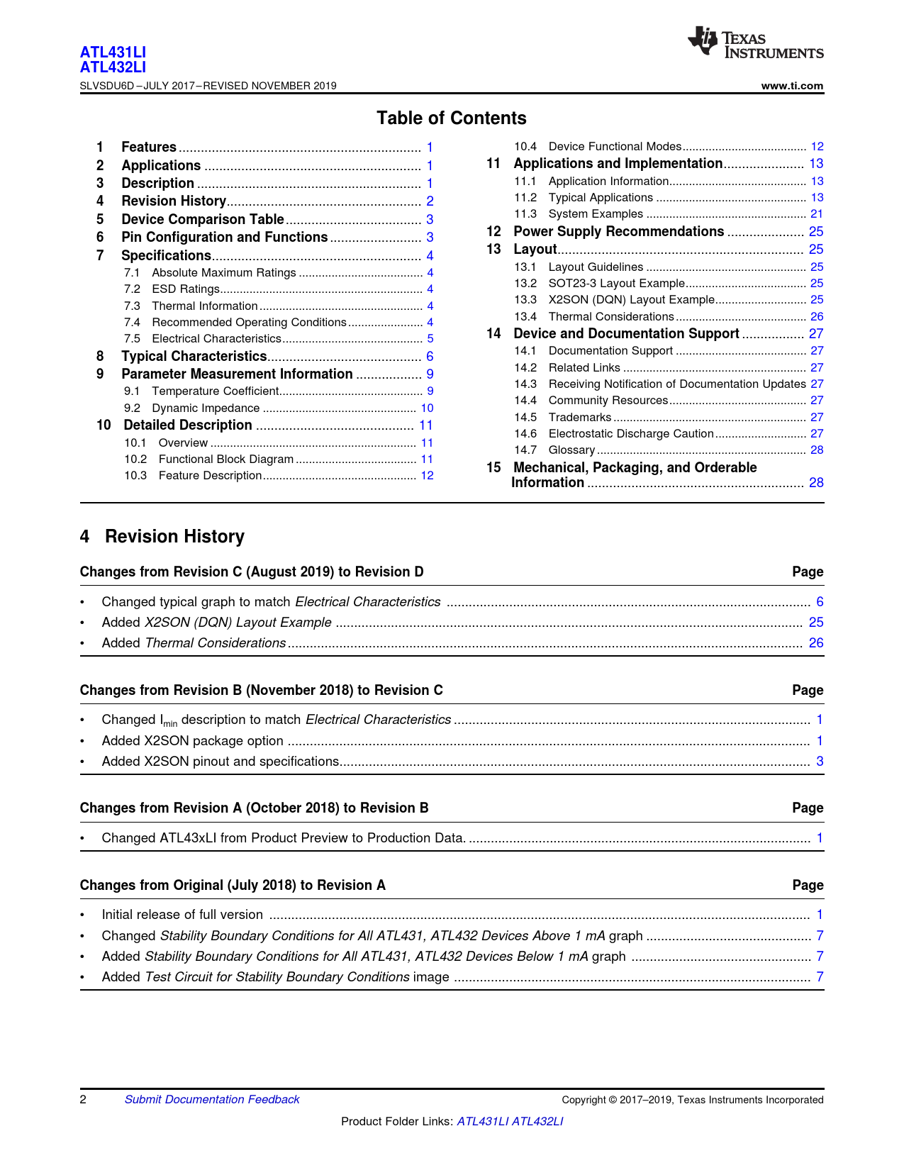 | Pages / Page | 40 / 2 — ATL431LI. ATL432LI. www.ti.com. Table of Contents. Features. … |