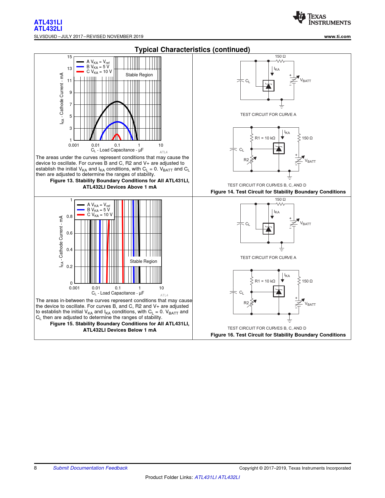 ATL431LI. ATL432LI. www.ti.com. Typical Characteristics (continued). Figure 13. Stability Boundary Conditions for All ATL431LI,