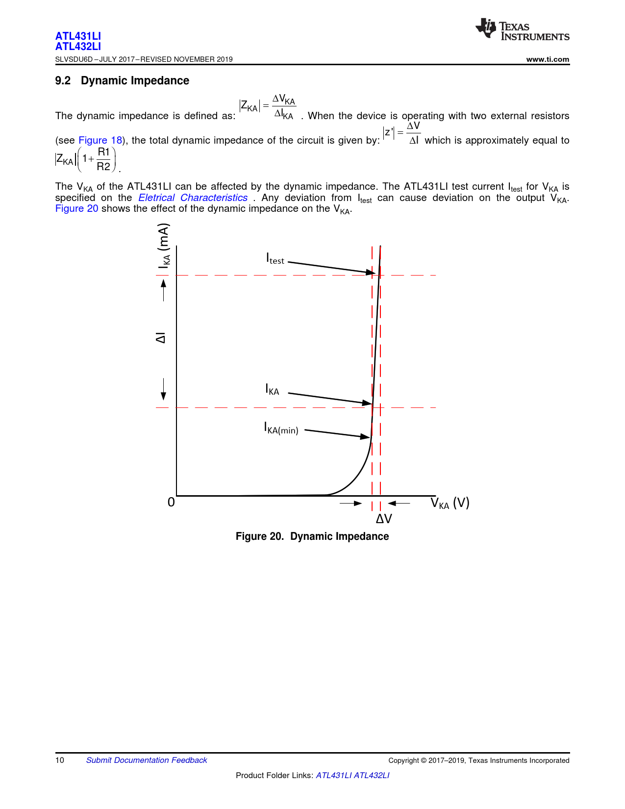 | Pages / Page | 40 / 10 — ATL431LI. ATL432LI. www.ti.com. 9.2 Dynamic Impedance. Figure 20. Dynamic … |