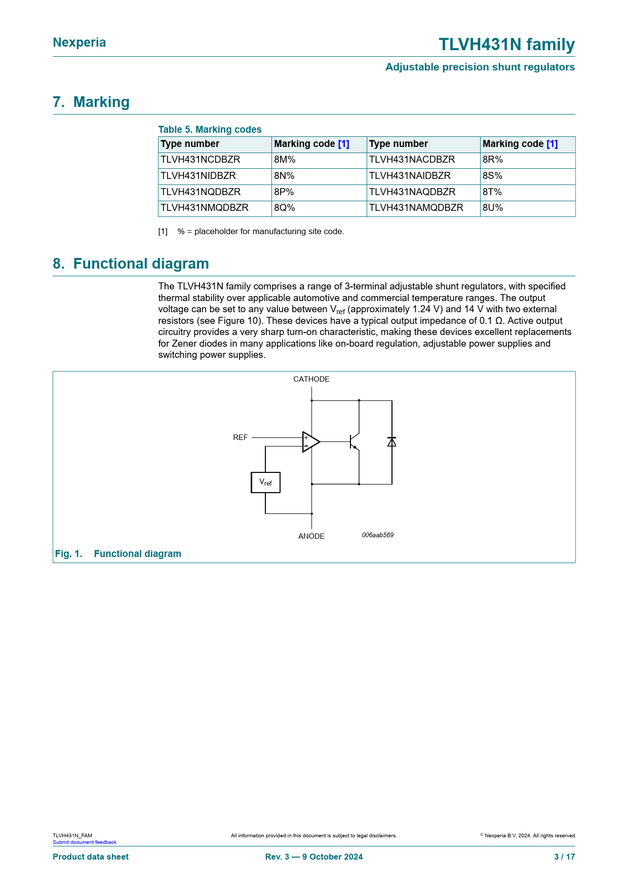 | Pages / Page | 17 / 3 — Nexperia. TLVH431N family. Adjustable precision shunt regulators. 7. … |