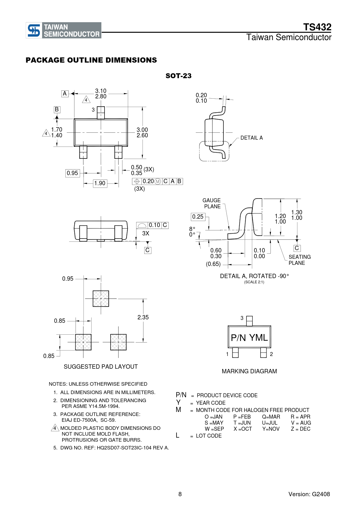 TS432 PACKAGE OUTLINE DIMENSIONS SOT-23