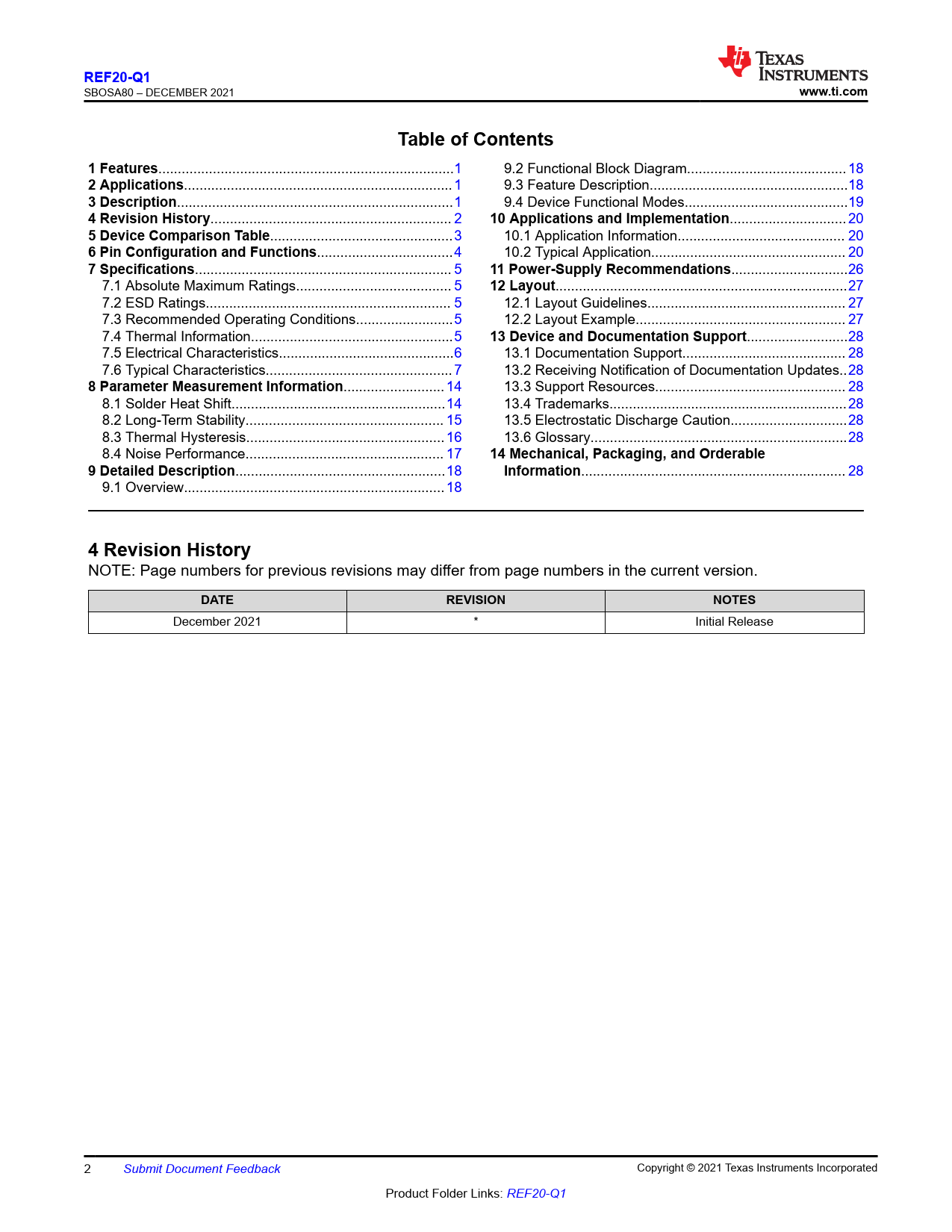 REF20-Q1. www.ti.com. Table of Contents. 1 Features. 2 Applications. 3 Description. 4 Revision History