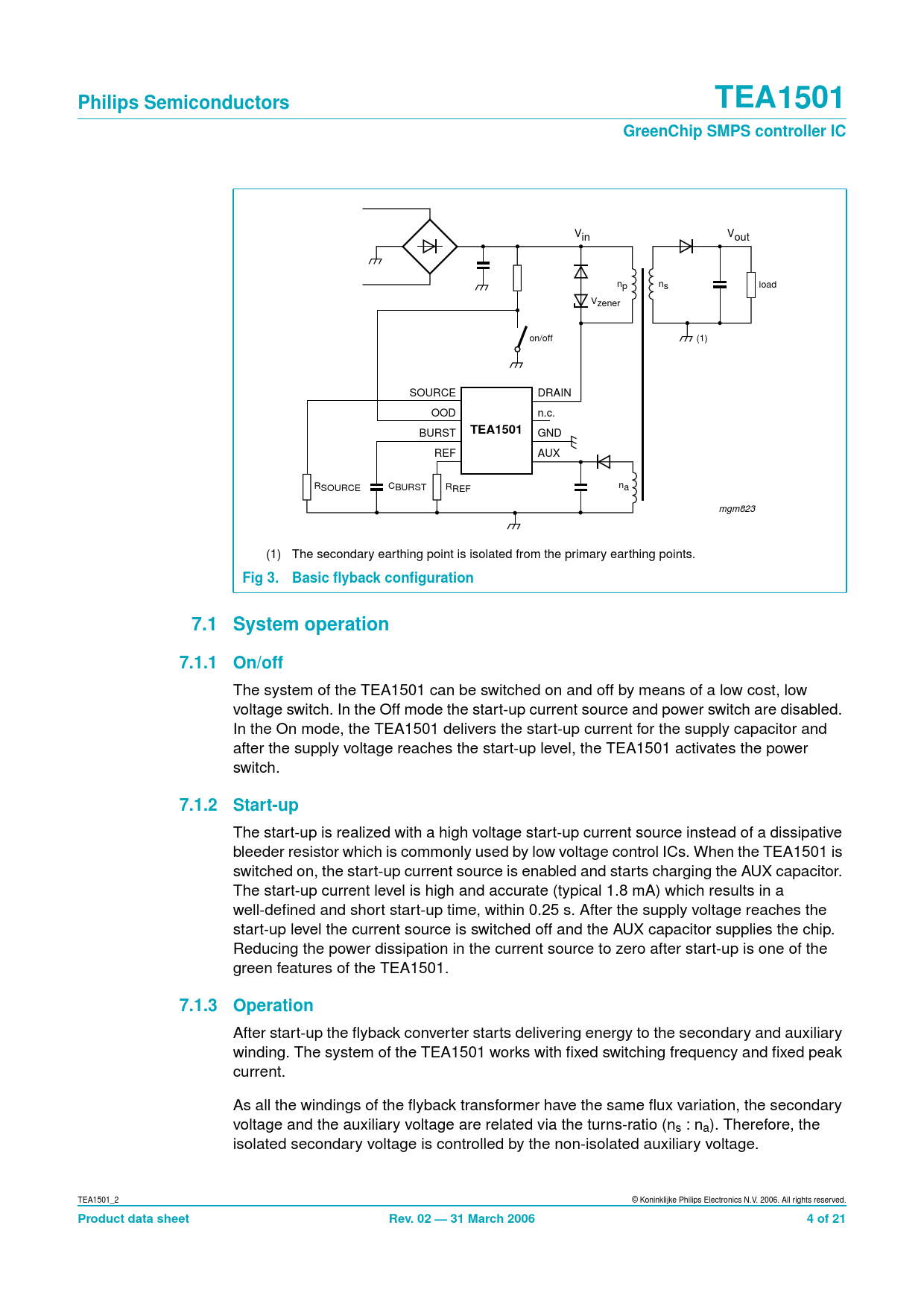 Fig 3. Basic flyback configuration 7.1 System operation 7.1.1 On/off