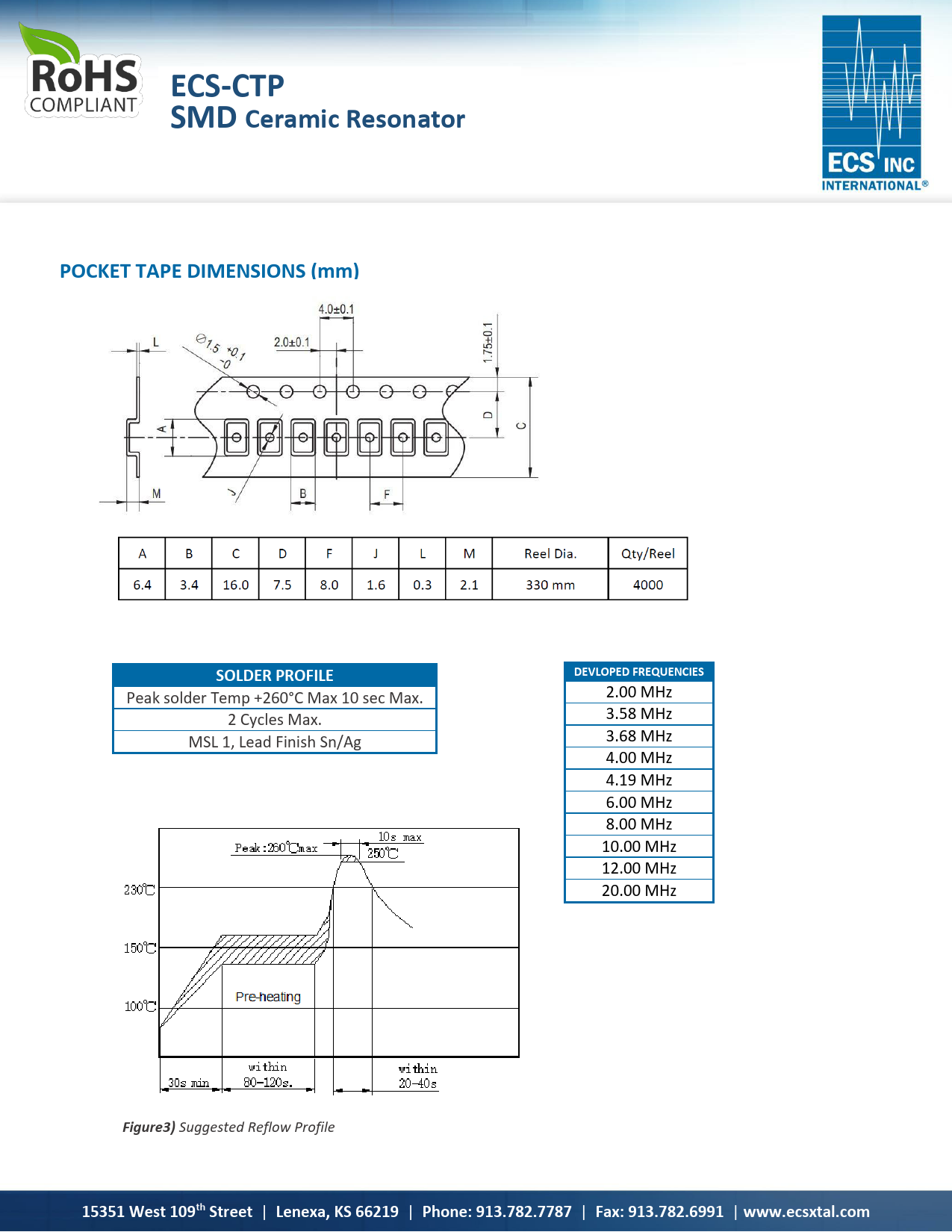 ECS-CTP. SMD Ceramic Resonator. POCKET TAPE DIMENSIONS (mm). DEVLOPED FREQUENCIES. SOLDER PROFILE. Figure3)