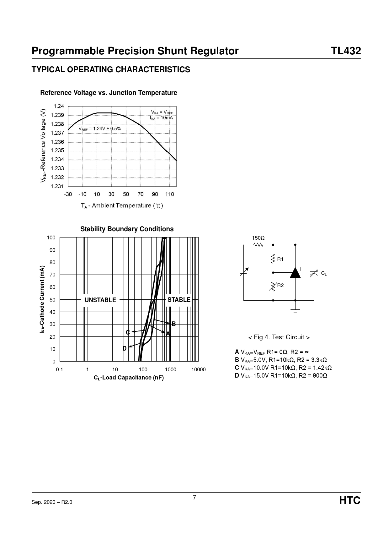 Programmable Precision Shunt Regulator TL432 TYPICAL OPERATING CHARACTERISTICS Reference Voltage vs. Junction Temperature Stability Boundary Conditions