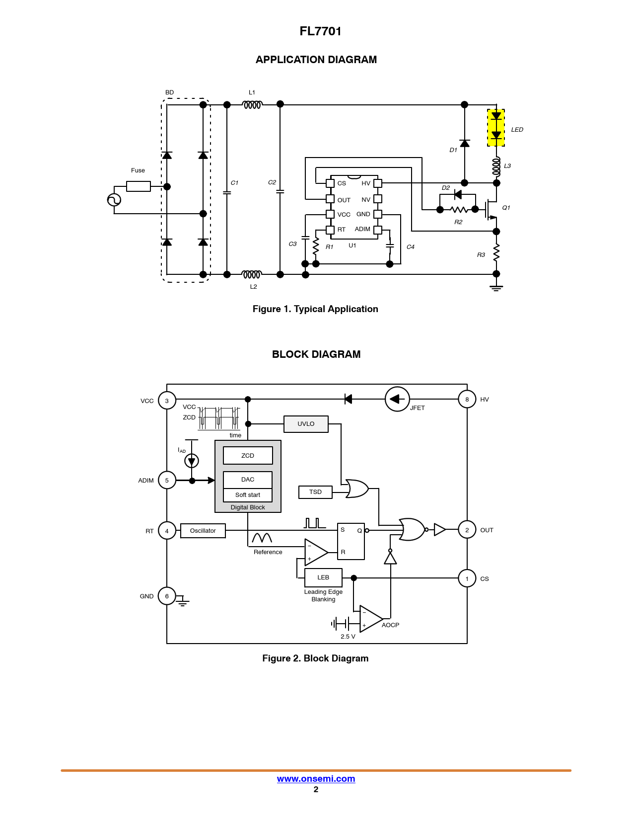 FL7701. APPLICATION DIAGRAM. Figure 1. Typical Application. BLOCK DIAGRAM. Figure 2. Block Diagram. www.onsemi.com
