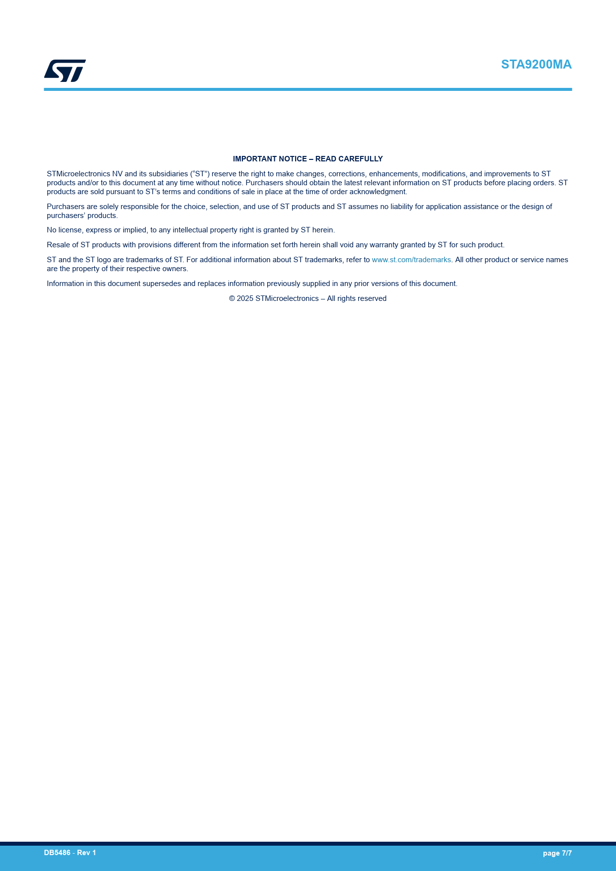 | Pages / Page | 7 / 7 — STA9200MA. IMPORTANT NOTICE – READ CAREFULLY. DB5486. Rev 1. page 7/7 |