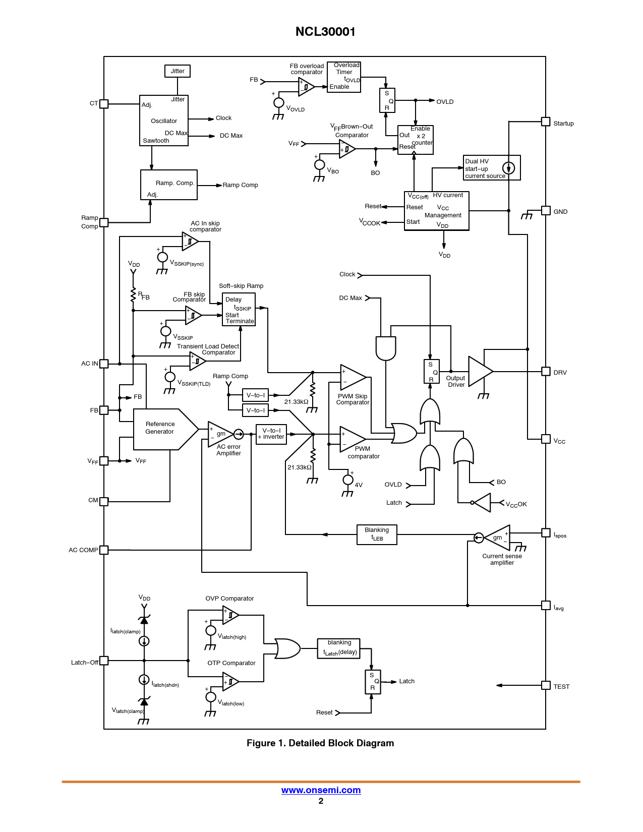 | Pages / Page | 33 / 2 — NCL30001. Figure 1. Detailed Block Diagram. www.onsemi.com |