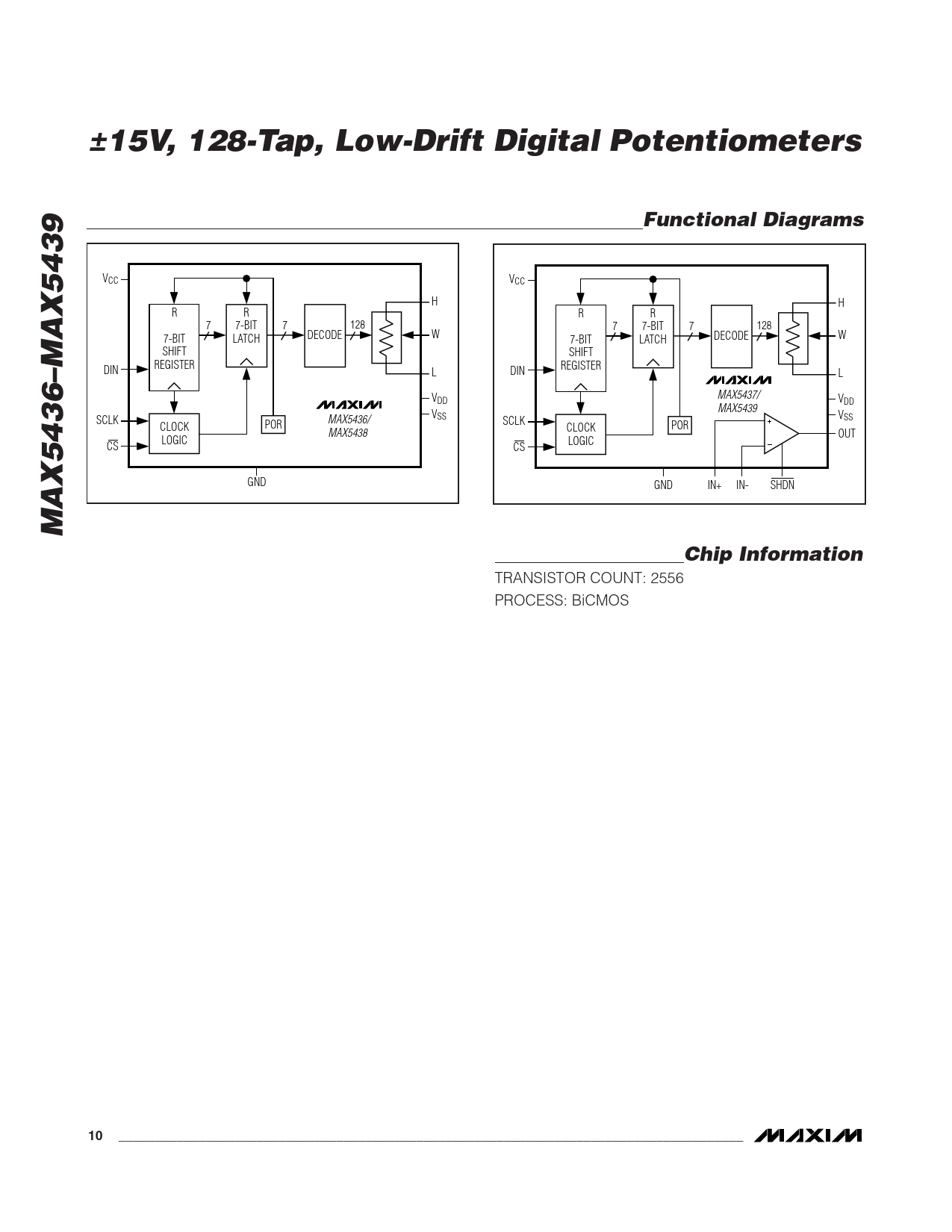 ±15V, 128-Tap, Low-Drift Digital Potentiometers Functional Diagrams MAX5436–MAX5439 Chip Information