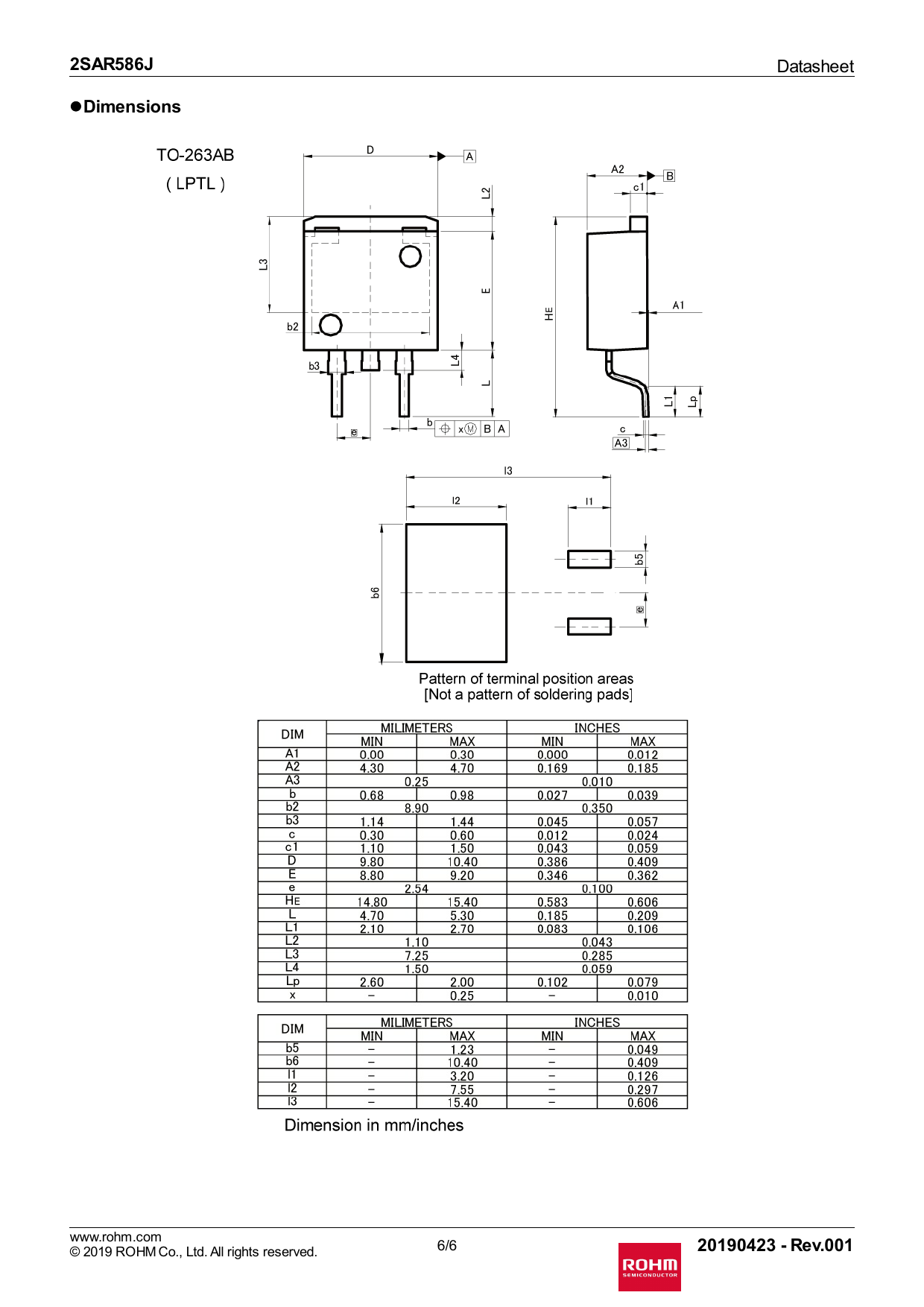 | Pages / Page | 9 / 6 — 2SAR586J. Dimensions. 20190423 - Rev.001 |