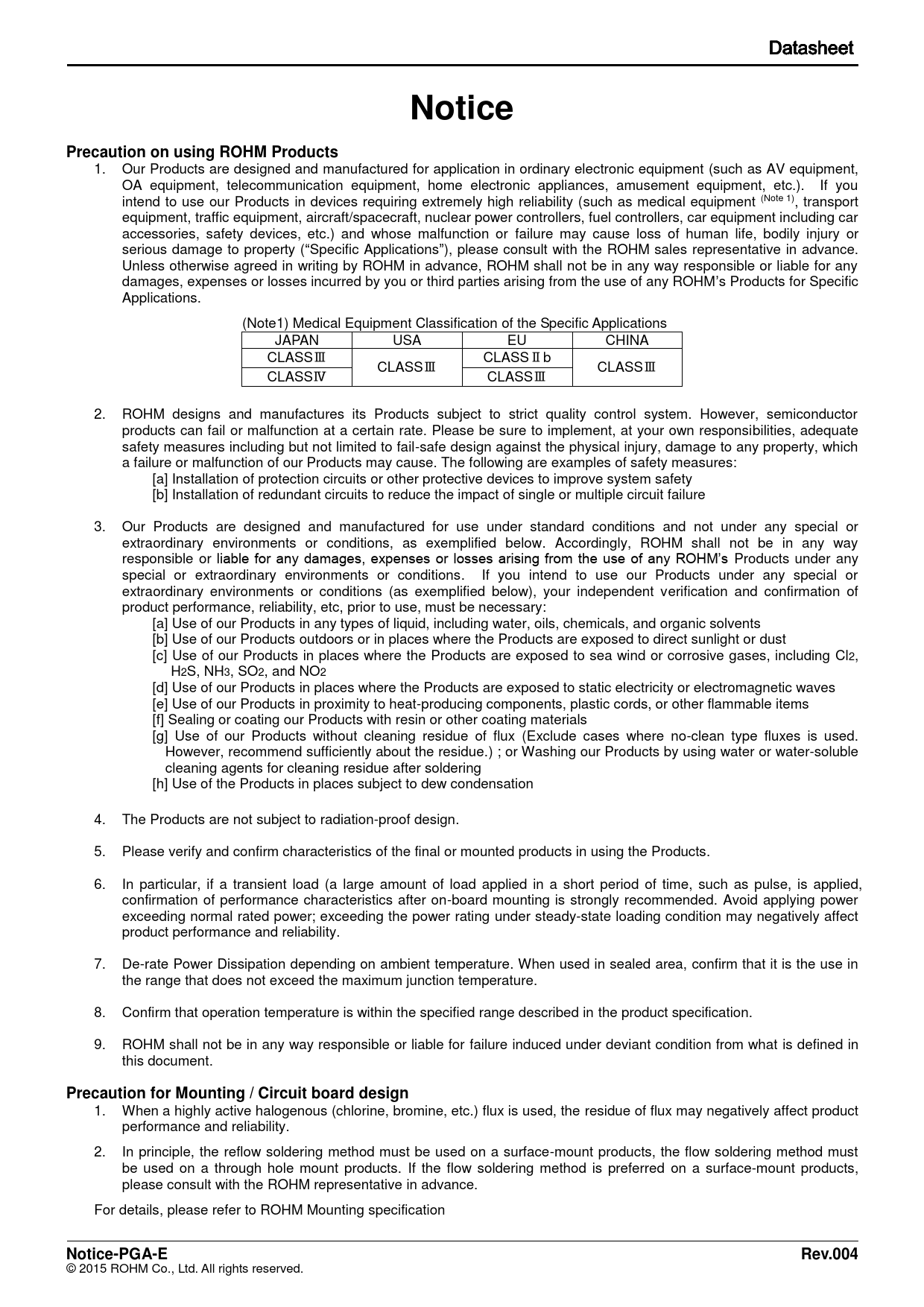 Notice. Precaution on using ROHM Products. Precaution for Mounting / Circuit board design. Notice-PGA-E. Rev.00 4