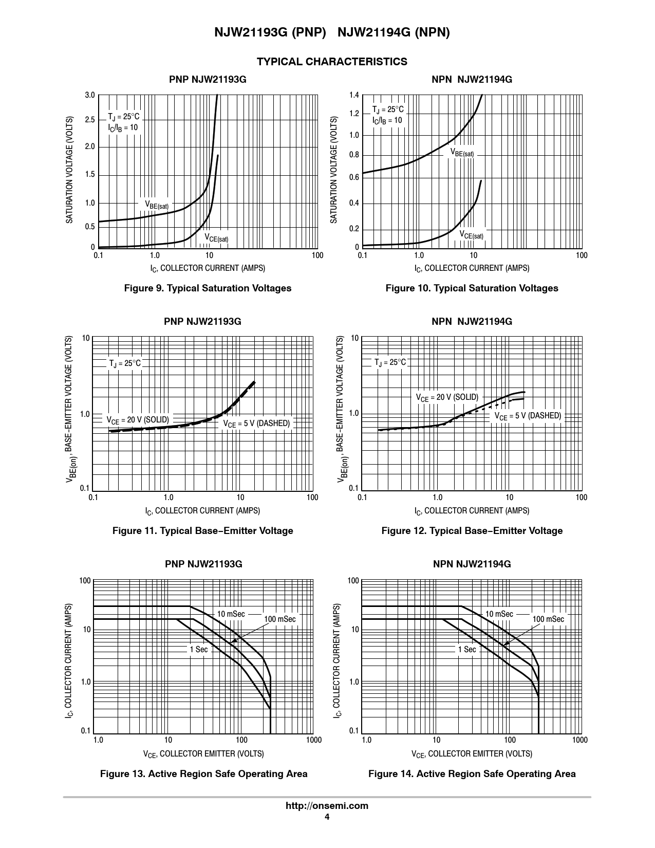 NJW21193G (PNP) NJW21194G (NPN). TYPICAL CHARACTERISTICS. PNP NJW21193G. NPN NJW21194G. Figure 9. Typical Saturation Voltages