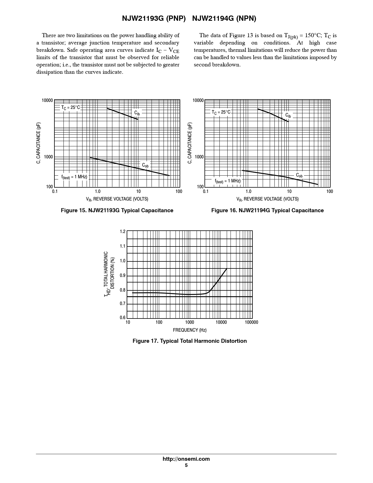 NJW21193G (PNP) NJW21194G (NPN). Figure 15. NJW21193G Typical Capacitance. Figure 16. NJW21194G Typical Capacitance