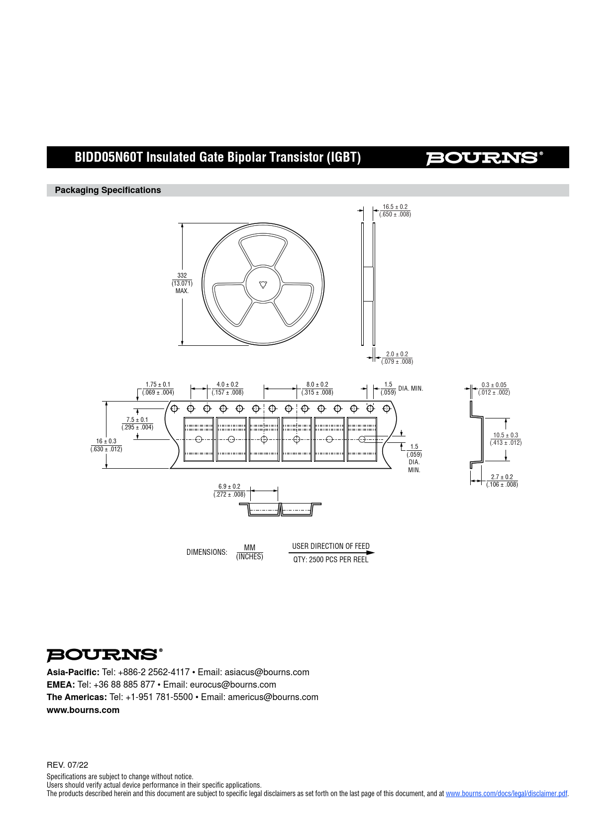 BIDD05N60T Insulated Gate Bipolar Transistor (IGBT). Packaging Specifications. Asia-Pacific:. EMEA:. The Americas: