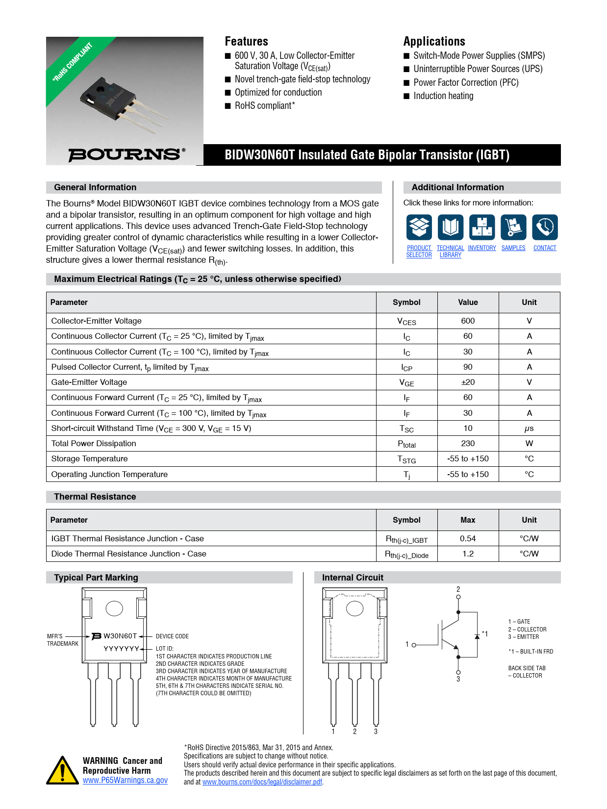 Datasheet BIDW30N60T (Bourns)