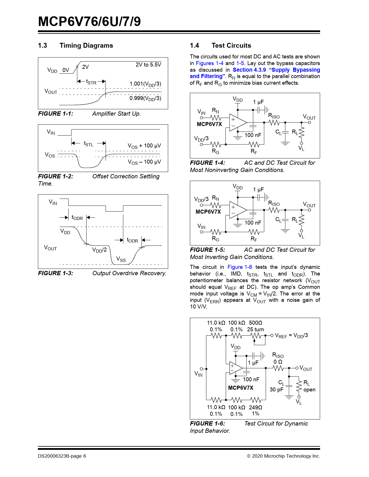 link to page 6 link to page 6 link to page 21 link to page 21 link to page 21 link to page 6 MCP6V76/6U/7/91.3Timing Diagrams1.4Test Circuits The circuits used for most DC and AC tests are shown in Figures 1-4 and 1-5. Lay out the bypass capacitors 2V to 5.5V V 2V 0V as discussed in Section 4.3.9 “Supply Bypassing DD and Filtering” . RN is equal to the parallel combination tSTR 1.001(V of R DD/3) F and RG to minimize bias current effects. VOUT 0.999(VDD/3) VDD 1 µF R FIGURE 1-1: Amplifier Start Up. V N IN RISO VOUT MCP6V7X VIN CL RL 100 nF V t DD/3 STL VOS + 100 µV V R L V G RF OS VOS – 100 µV FIGURE 1-4: AC and DC Test Circuit for Most Noninverting Gain Conditions. FIGURE 1-2: Offset Correction Settling Time. VDD 1 µF R V V N DD/3 IN RISO VOUT MCP6V7X tODR CL RL 100 nF VIN VDD V t R L ODR G RF VOUT VDD/2 FIGURE 1-5: AC and DC Test Circuit for Most Inverting Gain Conditions. VSS The circuit in Figure 1-6 tests the input’s dynamic FIGURE 1-3: Output Overdrive Recovery. behavior (i.e., IMD, tSTR, tSTL and tODR). The potentiometer balances the resistor network (VOUT should equal VREF at DC). The op amp’s Common mode input voltage is VCM = VIN/2. The error at the input (VERR) appears at VOUT with a noise gain of 10 V/V. 11.0 kΩ 100 kΩ 500Ω 0.1% 0.1% 25 turn VREF = VDD/3 VDD RISO 1 µF 0 Ω VOUT VIN 100 nF CL RL MCP6V7X 30 pF open VL 11.0 kΩ 100 kΩ 249Ω 0.1% 0.1% 1% FIGURE 1-6: Test Circuit for Dynamic Input Behavior. DS20006323B-page 6 2020 Microchip Technology Inc. Document Outline 170 µA, 2 MHz Zero-Drift Op Amps Features Typical Applications Design Aids Related Parts Description Package Types Typical Application Circuit 1.0 Electrical Characteristics 1.1 Absolute Maximum Ratings 1.2 Specifications TABLE 1-1: DC Electrical Specifications TABLE 1-2: AC Electrical Specifications TABLE 1-3: Temperature Specifications 1.3 Timing Diagrams FIGURE 1-1: Amplifier Start Up. FIGURE 1-2: Offset Correction Settling Time. FIGURE 1-3: Output Overdrive Recovery. 1.4 Test Circuits FIGURE 1-4: AC and DC Test Circuit for Most Noninverting Gain Conditions. FIGURE 1-5: AC and DC Test Circuit for Most Inverting Gain Conditions. FIGURE 1-6: Test Circuit for Dynamic Input Behavior. 2.0 Typical Performance Curves 2.1 DC Input Precision FIGURE 2-1: Input Offset Voltage. FIGURE 2-2: Input Offset Voltage Drift. FIGURE 2-3: Input Offset Voltage Quadratic Temp. Co. FIGURE 2-4: Input Offset Voltage vs. Power Supply Voltage with VCM = VCML. FIGURE 2-5: Input Offset Voltage vs. Power Supply Voltage with VCM = VCMH. FIGURE 2-6: Input Offset Voltage vs. Output Voltage with VDD = 2.0V. FIGURE 2-7: Input Offset Voltage vs. Output Voltage with VDD = 5.5V. FIGURE 2-8: Input Offset Voltage vs. Common Mode Voltage with VDD = 2V. FIGURE 2-9: Input Offset Voltage vs. Common Mode Voltage with VDD = 5.5V. FIGURE 2-10: CMRR and PSRR vs. Ambient Temperature. FIGURE 2-11: DC Open-Loop Gain vs. Ambient Temperature. FIGURE 2-12: Input Bias and Offset Currents vs. Common Mode Input Voltage with TA = +85°C. FIGURE 2-13: Input Bias and Offset Currents vs. Common Mode Input Voltage with TA = +125°C. FIGURE 2-14: Input Bias and Offset Currents vs. Ambient Temperature with VDD = +5.5V. FIGURE 2-15: Input Bias Current vs. Input Voltage (below VSS). 2.2 Other DC Voltages and Currents FIGURE 2-16: Input Common Mode Voltage Headroom (Range) vs. Ambient Temperature. FIGURE 2-17: Output Voltage Headroom vs. Output Current. FIGURE 2-18: Output Voltage Headroom vs. Ambient Temperature. FIGURE 2-19: Output Short Circuit Current vs. Power Supply Voltage. FIGURE 2-20: Supply Current vs. Power Supply Voltage. FIGURE 2-21: Power-On Reset Voltage vs. Ambient Temperature. 2.3 Frequency Response FIGURE 2-22: CMRR and PSRR vs. Frequency. FIGURE 2-23: Open-Loop Gain vs. Frequency with VDD = 2V. FIGURE 2-24: Open-Loop Gain vs. Frequency with VDD = 5.5V. FIGURE 2-25: Gain Bandwidth Product and Phase Margin vs. Ambient Temperature. FIGURE 2-26: Gain Bandwidth Product and Phase Margin vs. Common Mode Input Voltage. FIGURE 2-27: Gain Bandwidth Product and Phase Margin vs. Output Voltage. FIGURE 2-28: Closed-Loop Output Impedance vs. Frequency with VDD = 2V. FIGURE 2-29: Closed-Loop Output Impedance vs. Frequency with VDD = 5.5V. FIGURE 2-30: Maximum Output Voltage Swing vs. Frequency. FIGURE 2-31: EMIRR vs Frequency. FIGURE 2-32: EMIRR vs RF Input Peak Voltage. FIGURE 2-33: Channel-to-Channel Separation vs. Frequency. 2.4 Input Noise and Distortion FIGURE 2-34: Input Noise Voltage Density and Integrated Input Noise Voltage vs. Frequency. FIGURE 2-35: Input Noise Voltage Density vs. Input Common Mode Voltage. FIGURE 2-36: Intermodulation Distortion vs. Frequency with VCM Disturbance (see Figure 1-6). FIGURE 2-37: Intermodulation Distortion vs. Frequency with VDD Disturbance (see Figure 1-6). FIGURE 2-38: Input Noise vs. Time with 1 Hz and 10 Hz Filters and VDD = 2V. FIGURE 2-39: Input Noise vs. Time with 1 Hz and 10 Hz Filters and VDD = 5.5V. 2.5 Time Response FIGURE 2-40: Input Offset Voltage vs. Time at Power-Up. FIGURE 2-41: The MCP6V76/6U/7/9 Family Shows No Input Phase Reversal with Overdrive. FIGURE 2-42: Noninverting Small Signal Step Response. FIGURE 2-43: Noninverting Large Signal Step Response. FIGURE 2-44: Inverting Small Signal Step Response. FIGURE 2-45: Inverting Large Signal Step Response. FIGURE 2-46: Slew Rate vs. Ambient Temperature. FIGURE 2-47: Output Overdrive Recovery vs. Time with G = -10 V/V. FIGURE 2-48: Output Overdrive Recovery Time vs. Inverting Gain. 3.0 Pin Descriptions TABLE 3-1: Pin Function Table 3.1 Analog Outputs 3.2 Analog Inputs 3.3 Power Supply Pins 3.4 Exposed Thermal Pad (EP) 4.0 Applications 4.1 Overview of Zero-Drift Operation FIGURE 4-1: Simplified Zero-Drift Op Amp Functional Diagram. FIGURE 4-2: First Chopping Clock Phase; Equivalent Amplifier Diagram. FIGURE 4-3: Second Chopping Clock Phase; Equivalent Amplifier Diagram. 4.2 Other Functional Blocks FIGURE 4-4: Simplified Analog Input ESD Structures.
