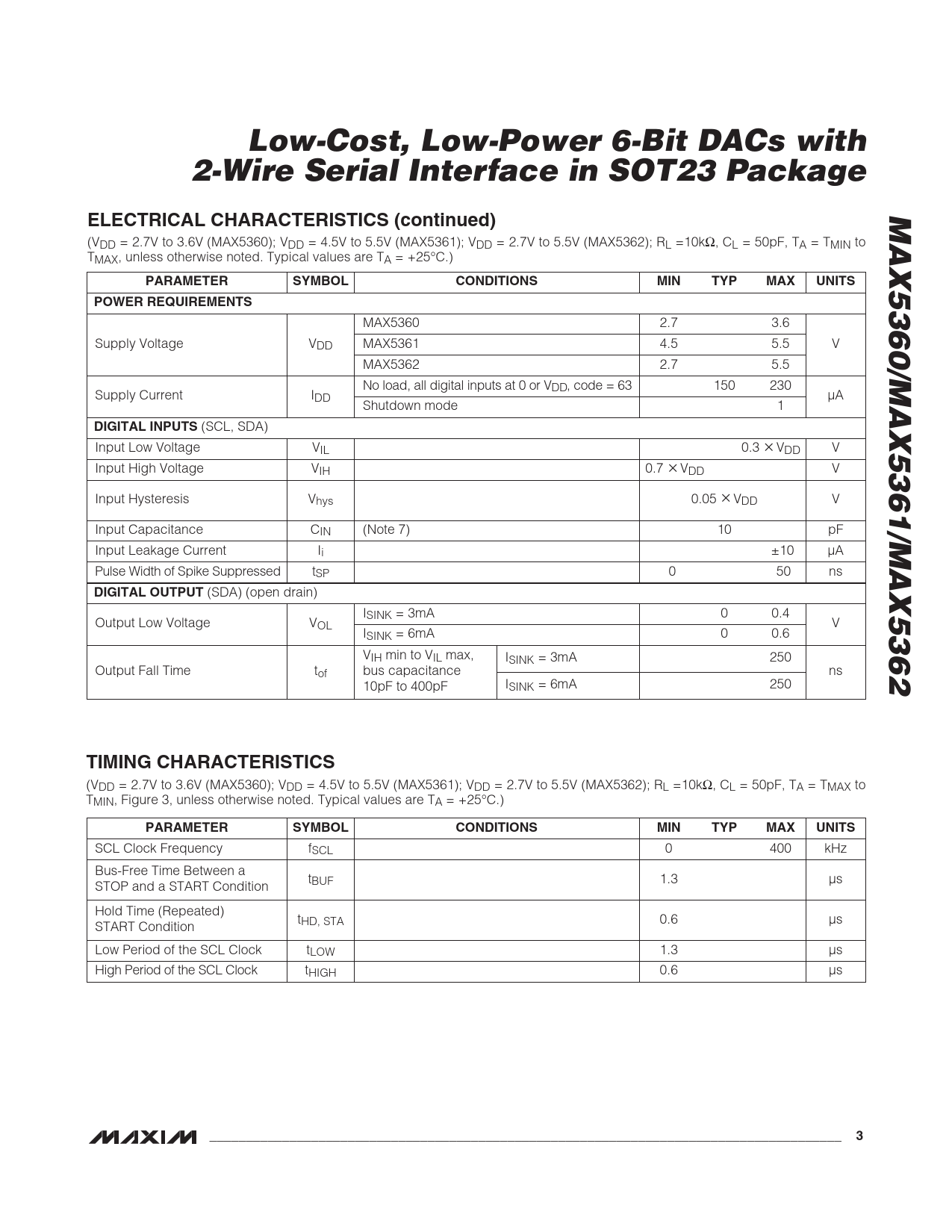 Low-Cost, Low-Power 6-Bit DACs with 2-Wire Serial Interface in SOT23 Package MAX5360/MAX5361/MAX5362 ELECTRICAL CHARACTERISTICS (continued)
