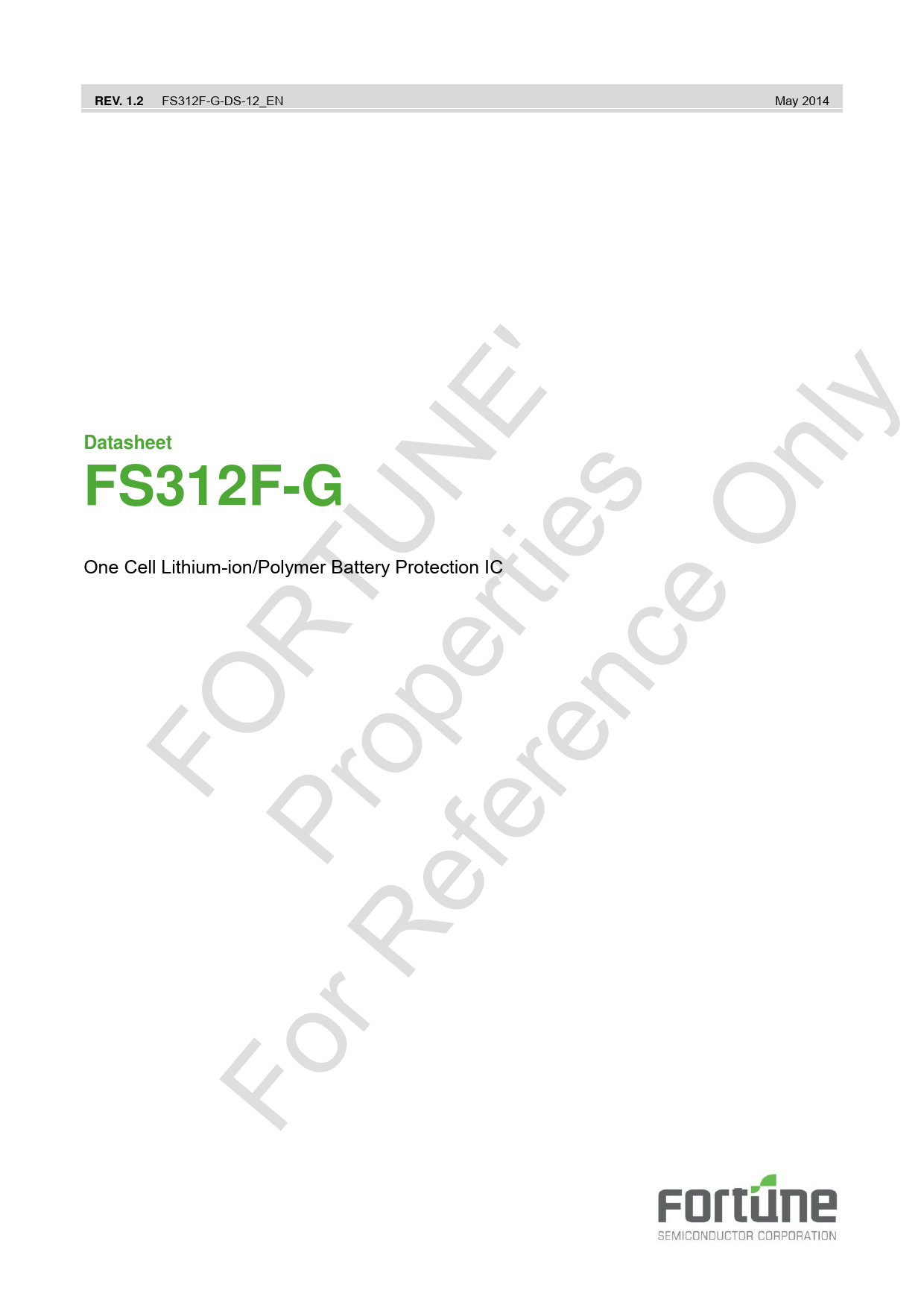 FS312F-G-DS-12_EN May 2014 FO Fo P R r R ro TU ef pe NE er rti ' en es ce O nl y REV. 1.2 Datasheet FS312F-G One Cell Lithium-ion/Polymer Battery Protection IC