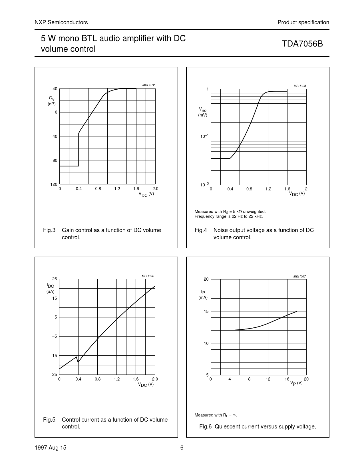 NXP. Semiconductors. Product. specification. 5. W. mono. BTL. audio. amplifier. with. DC. TDA7056B. volume. control. MBH372. MBH365. 40. 1. handbook,. halfpage