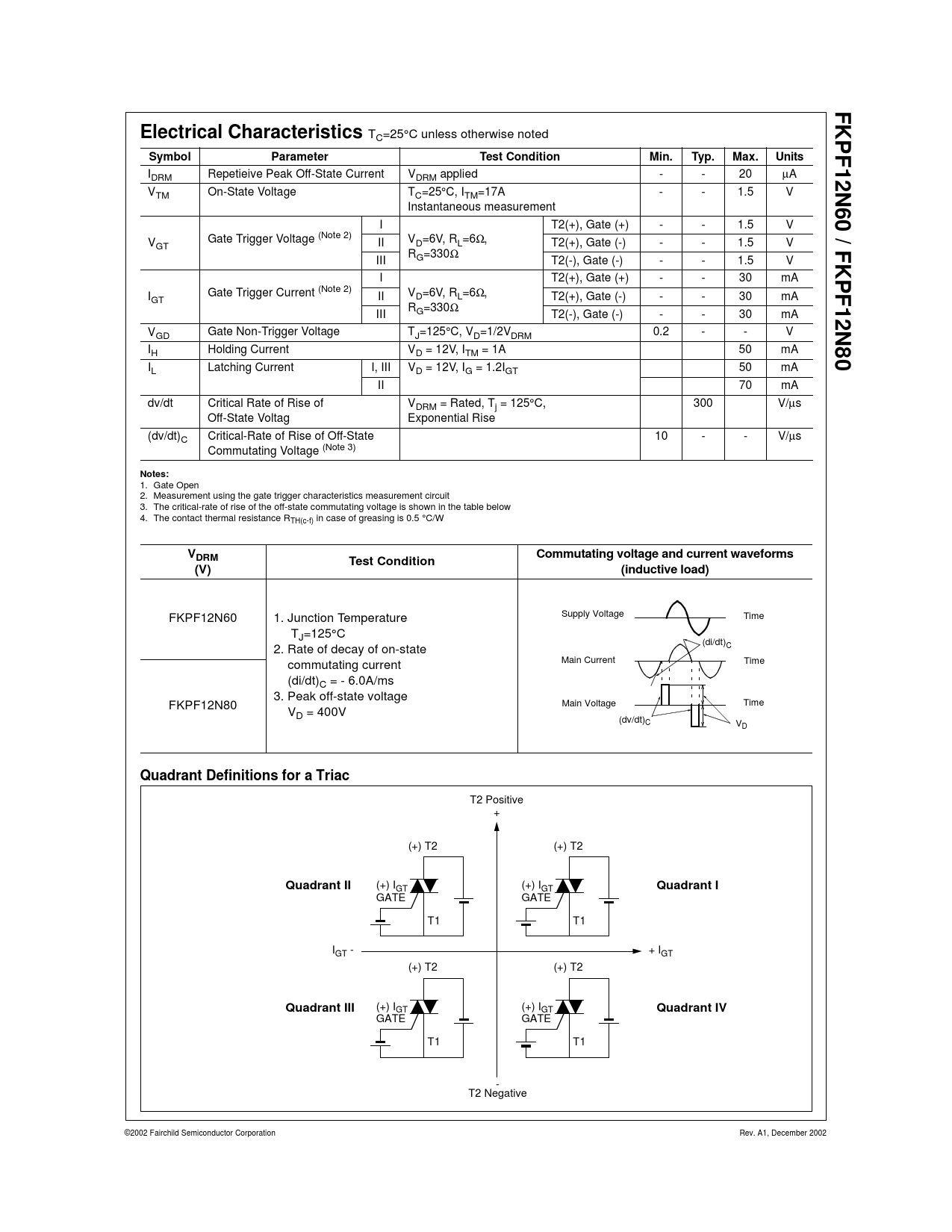 FKPF12N60 / FKPF12N80. Electrical Characteristics. Symbol. Parameter. Test Condition. Min. Typ. Max. Units. Notes:. VDRM