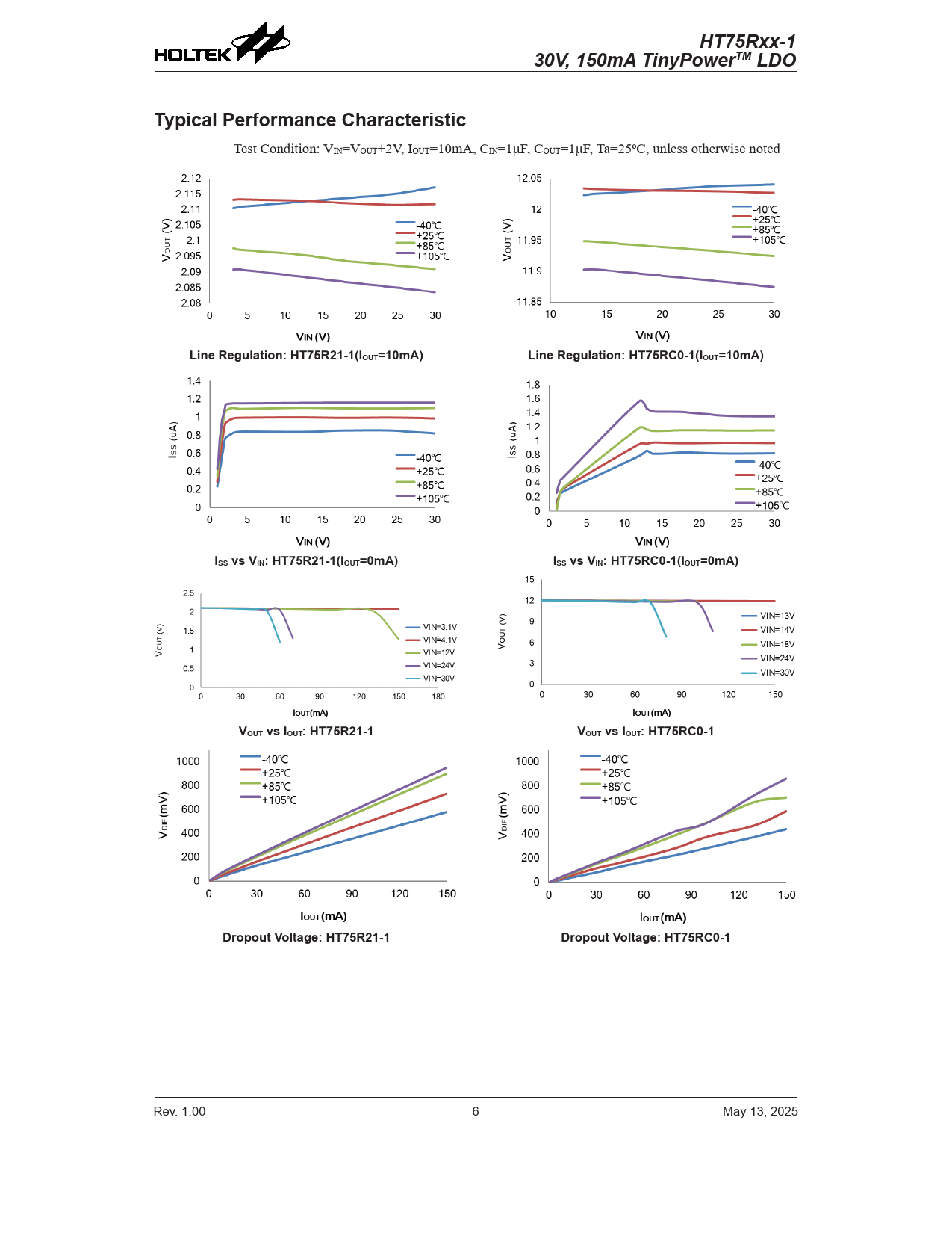 | Pages / Page | 17 / 6 — HT75Rxx-1. 30V, 150mA TinyPowerTM LDO. Typical Performance … |