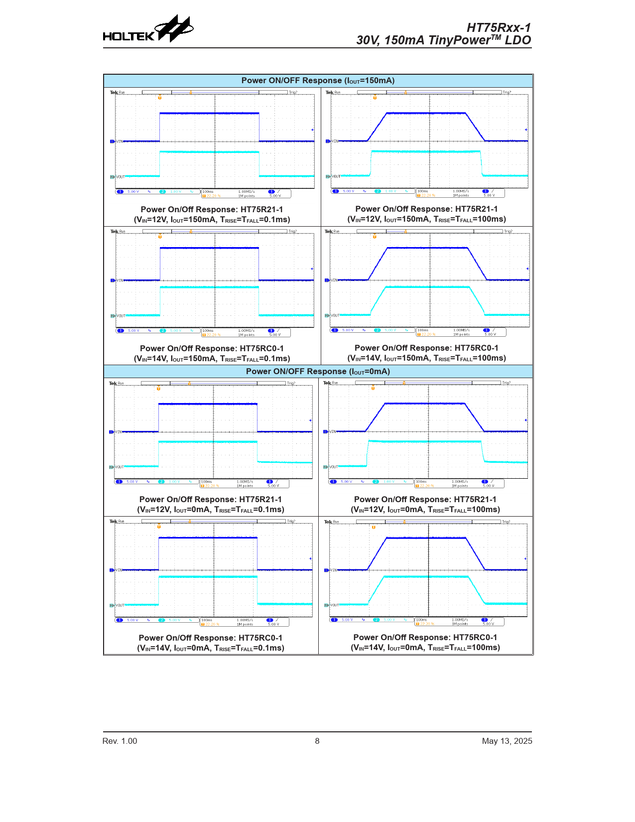 | Pages / Page | 17 / 8 — HT75Rxx-1. 30V, 150mA TinyPowerTM LDO. Power ON/OFF Response … |