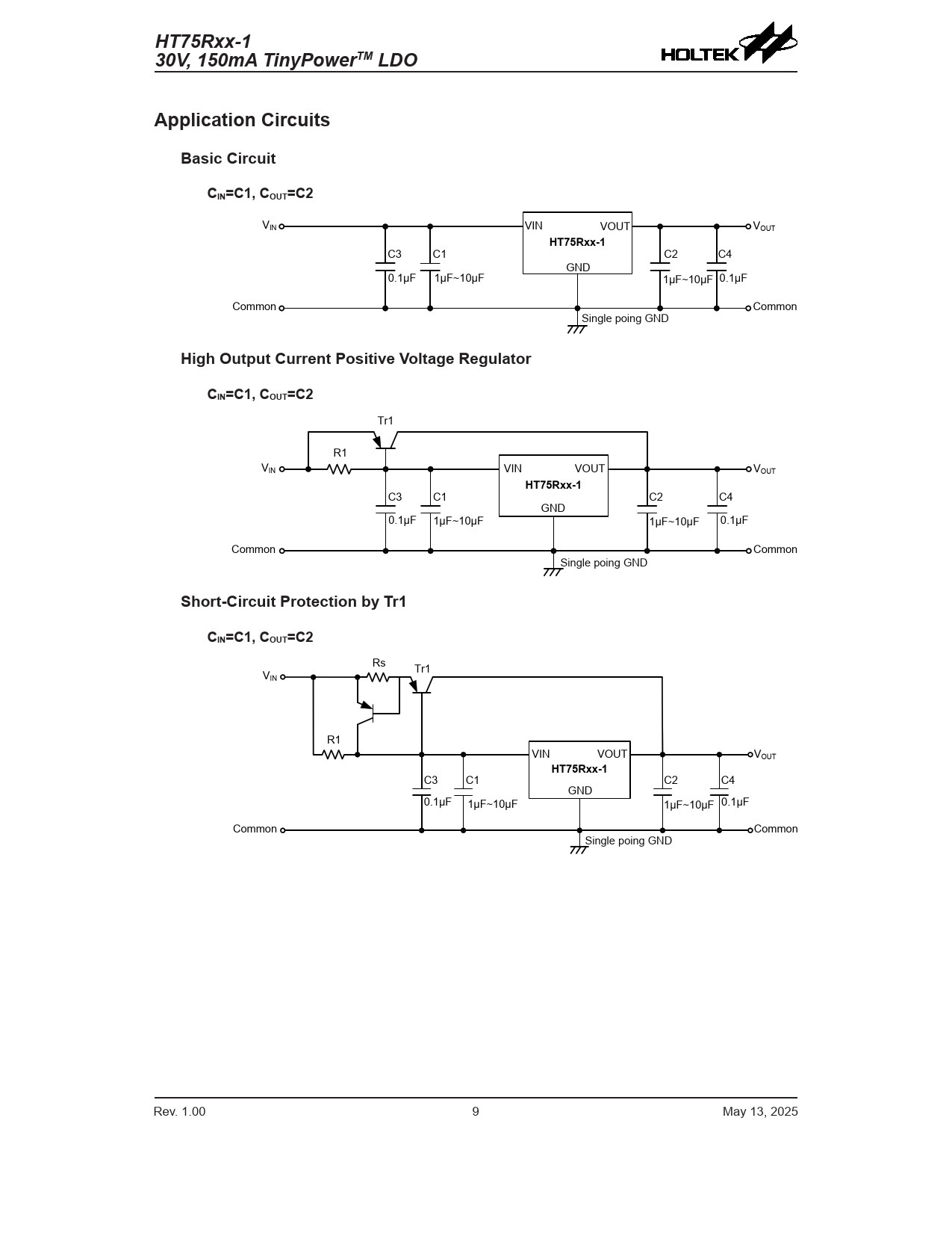 | Pages / Page | 17 / 9 — HT75Rxx-1. 30V, 150mA TinyPowerTM LDO. Application Circuits. Basic … |