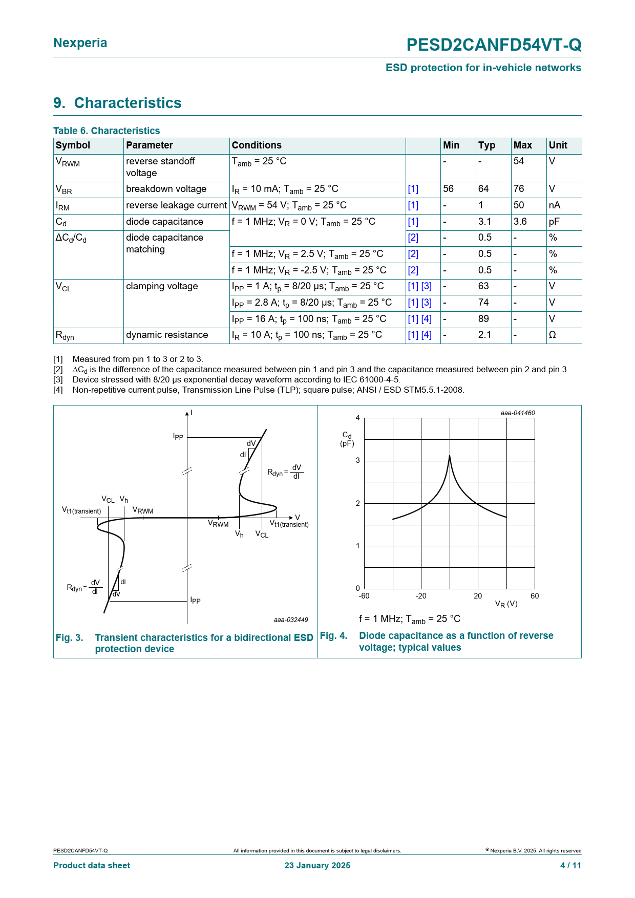 | Pages / Page | 11 / 4 — Nexperia. PESD2CANFD54VT-Q. ESD protection for in-vehicle networks. 9. … |