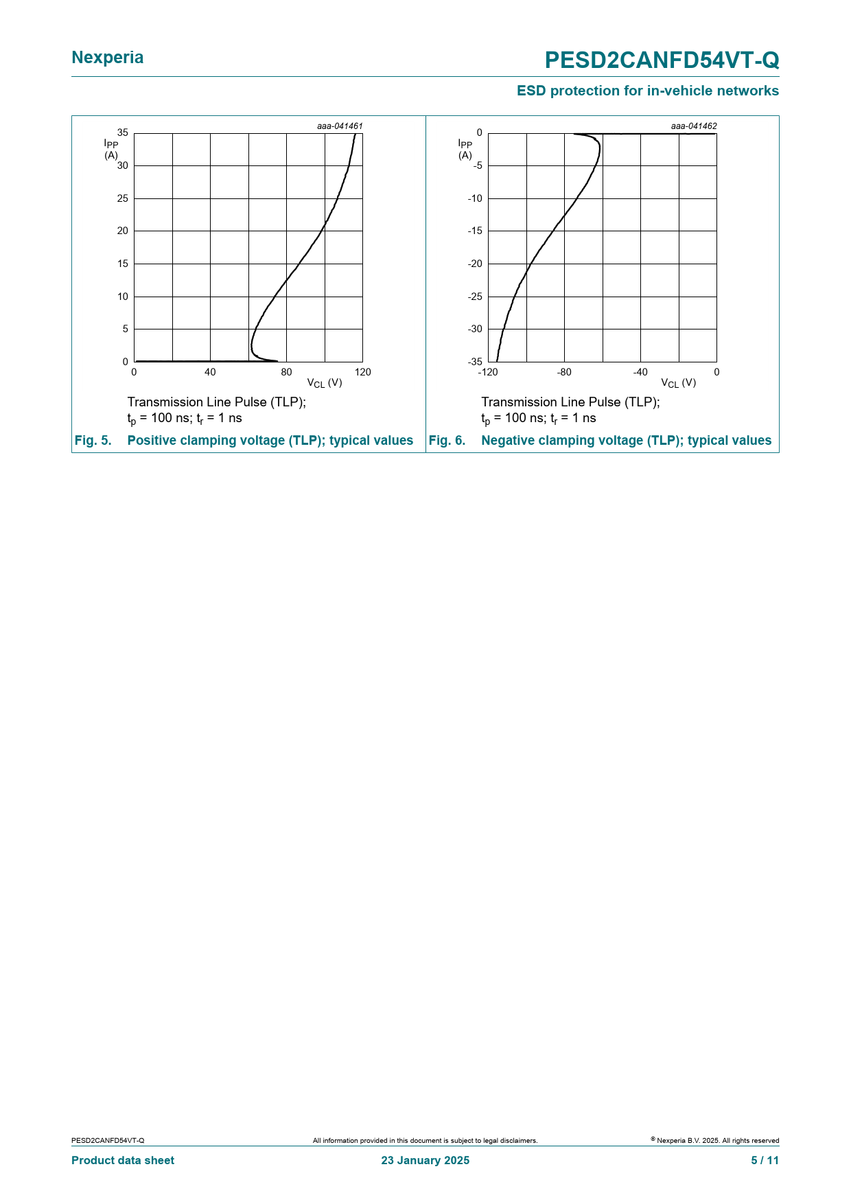| Pages / Page | 11 / 5 — Nexperia. PESD2CANFD54VT-Q. ESD protection for in-vehicle networks |