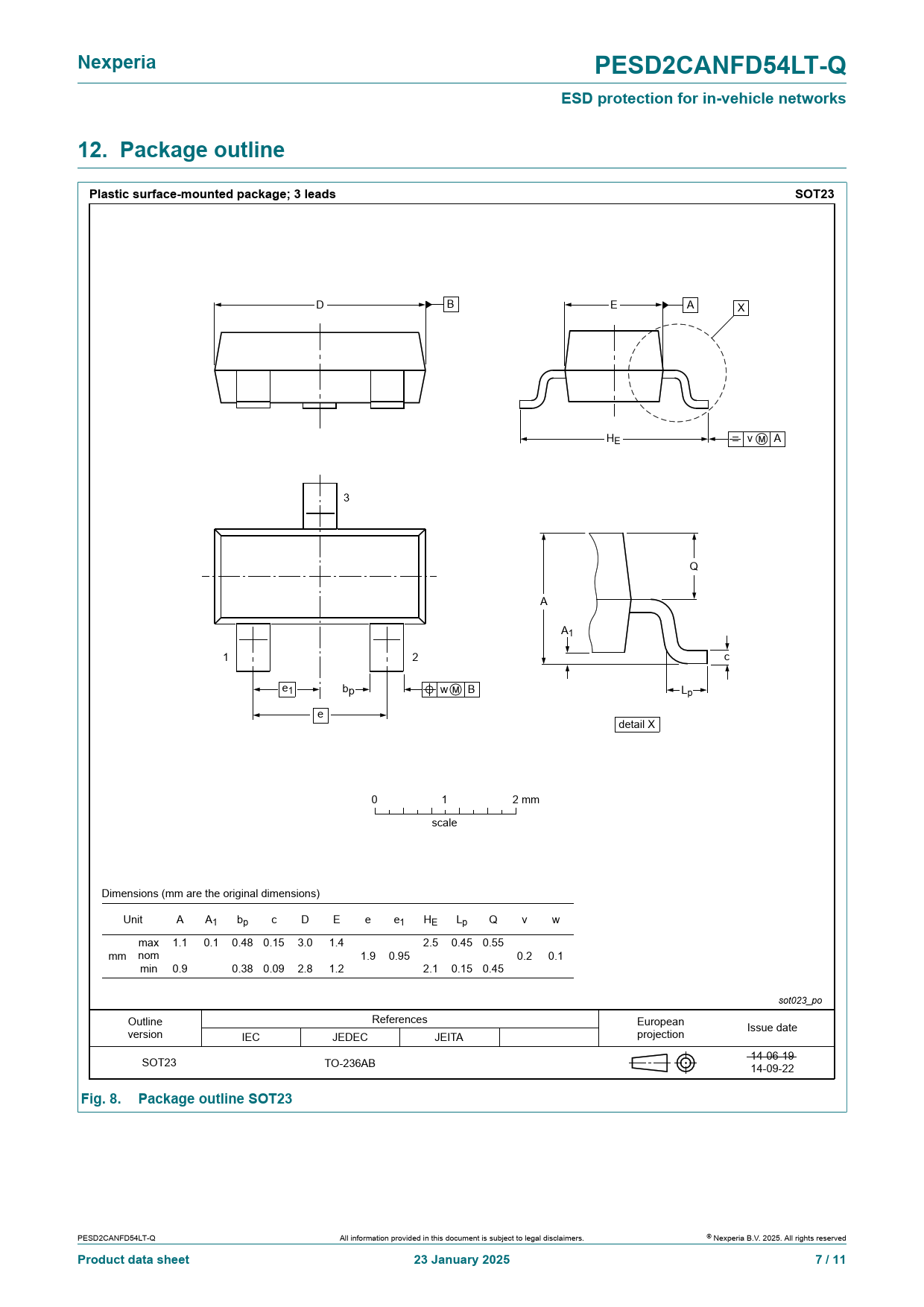 Nexperia. PESD2CANFD54LT-Q. ESD protection for in-vehicle networks. 12. Package outline