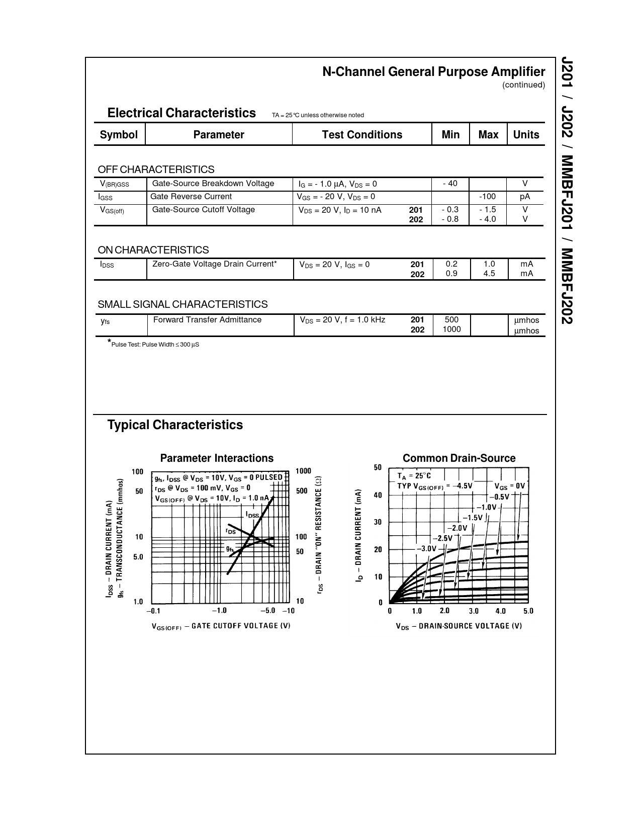 J201 / J202 / MMBFJ201 / MMBFJ202. N-Channel General Purpose Amplifier. Electrical Characteristics. Symbol. Parameter