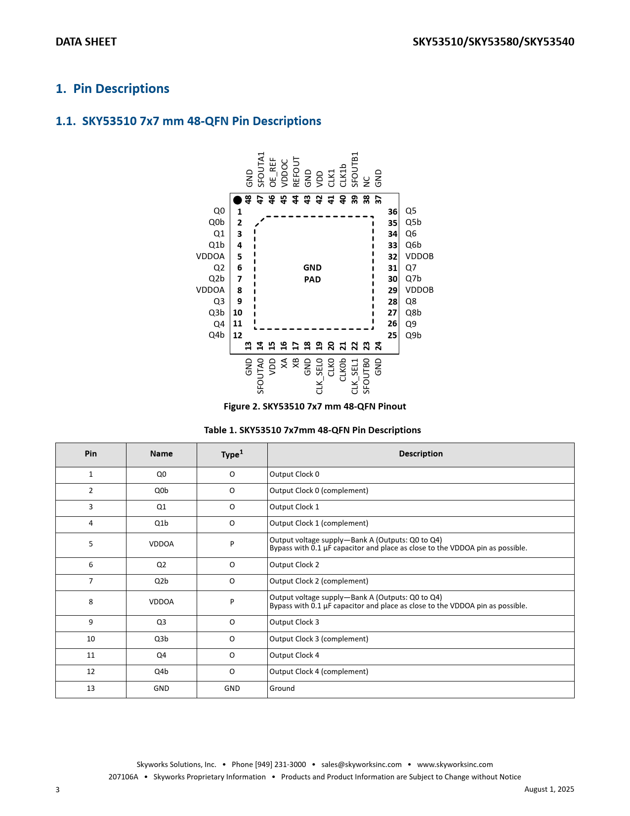 DATA SHEET SKY53510/SKY53580/SKY53540 1. Pin Descriptions 1.1. SKY53510 7x7 mm 48-QFN Pin Descriptions