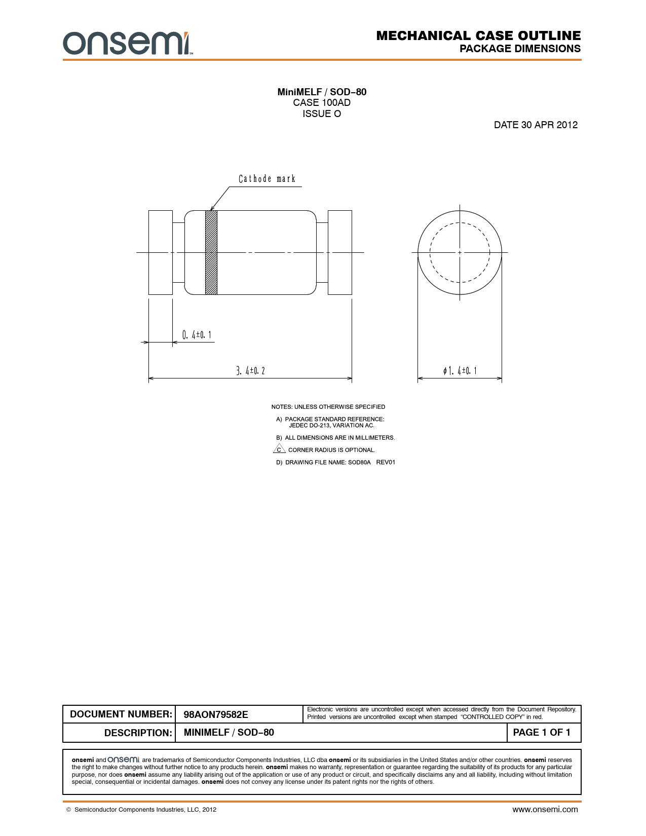 DESCRIPTION: MINIMELF / SOD−80 PAGE 1 OF 1 onsemi