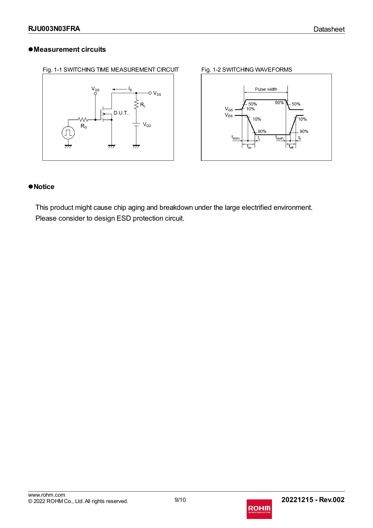 | Pages / Page | 13 / 9 — RJU003N03FRA. Measurement circuits. Notice. 20221215 - Rev.002 |