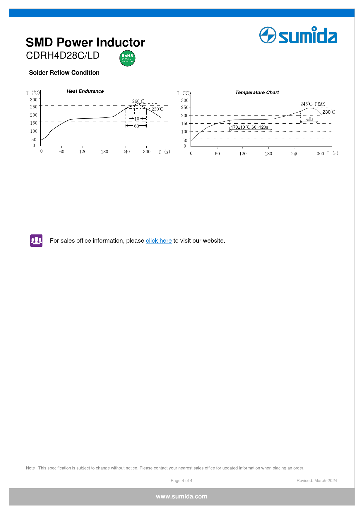 SMD Power Inductor. Solder Reflow Condition. Heat Endurance. Temperature Chart. www.sumida.com