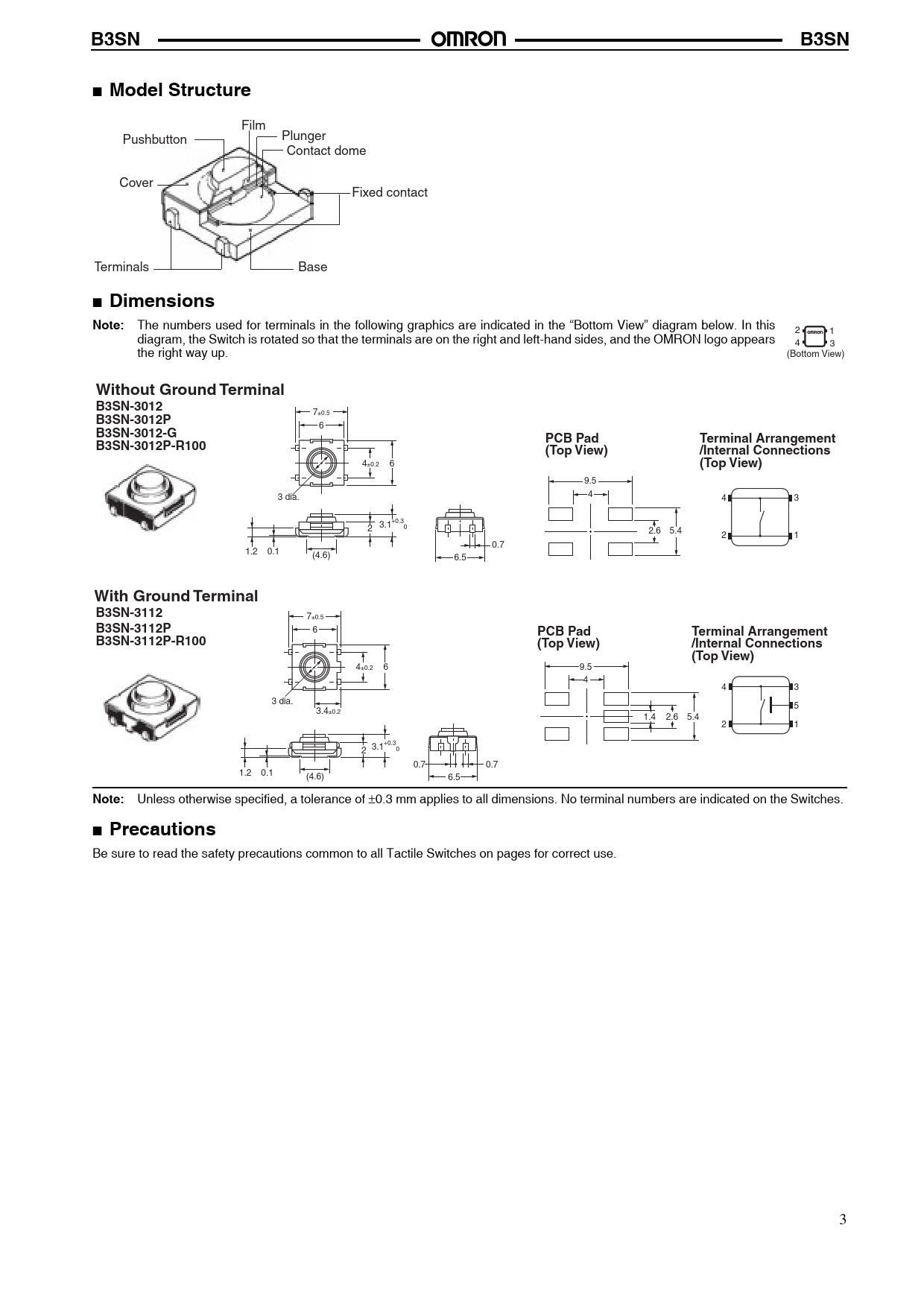Datasheet B3SN (Omron) - 3